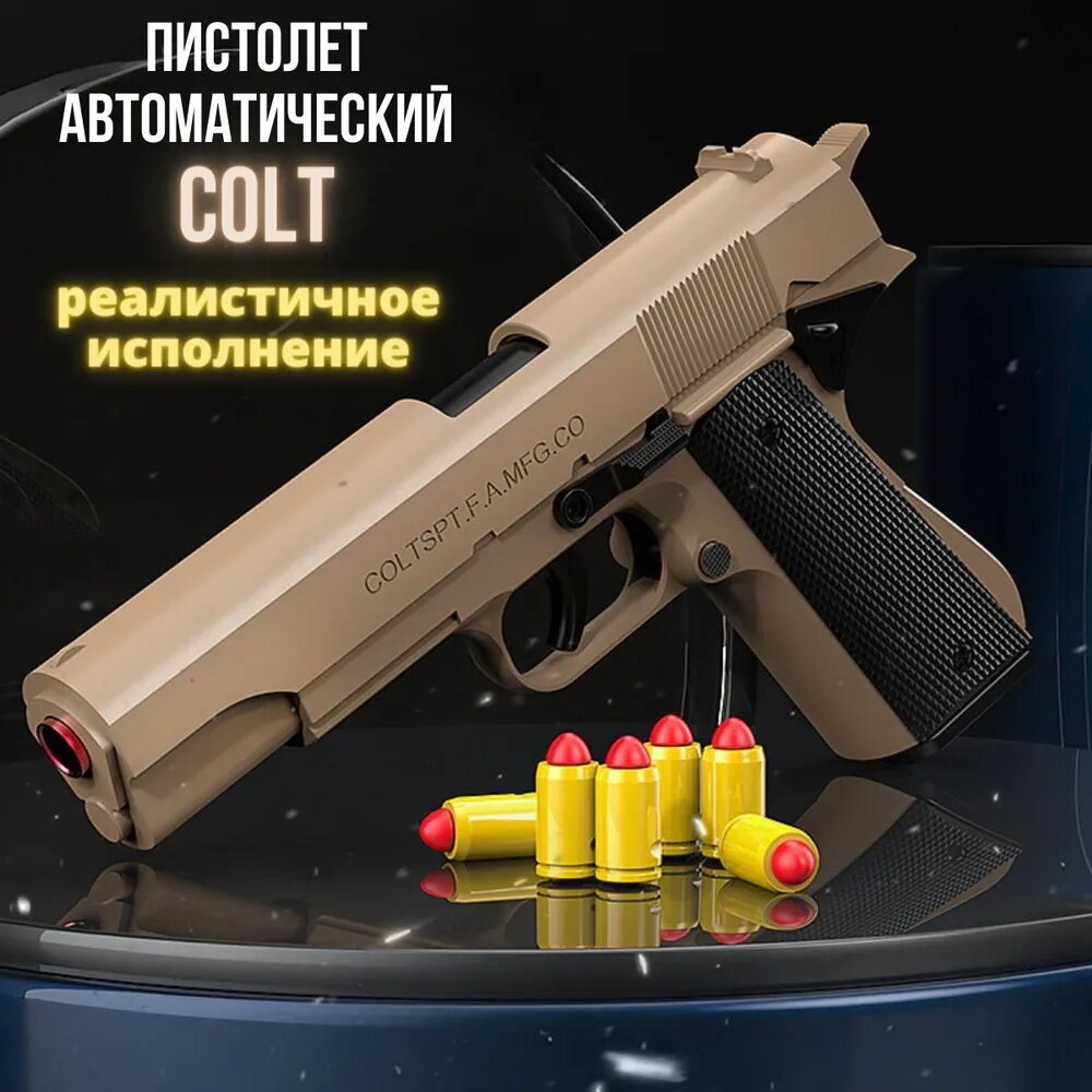 Пистолет автоматический с пульками Colt 1911 песочный, детское игрушечное оружие для мальчика интересное: