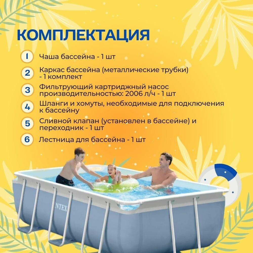 Купить INTEX Бассейн каркасный прямоугольный Rectangular Prism Frame Pool 300х175х80см + лестница, фильтр-насос картр. 2006 л/ч