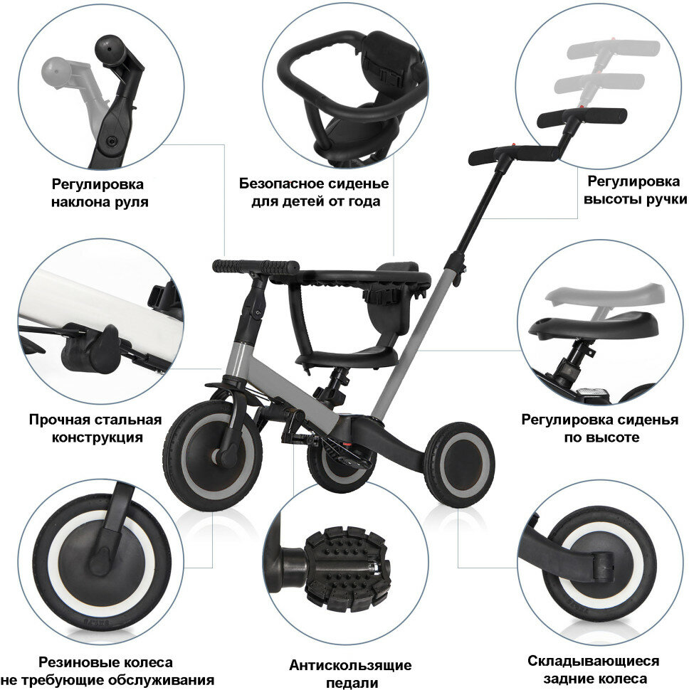 Детский беговел-велосипед 6в1 с родительской ручкой, серый - TR008-GREY интересное: