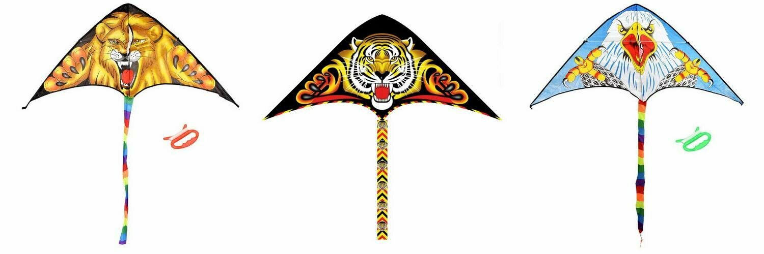 Змей воздушный BOYSCOUT 130х62 см, шнур 30 метров (3 вида в коробке: Лев, Тигр, Орел) 61483