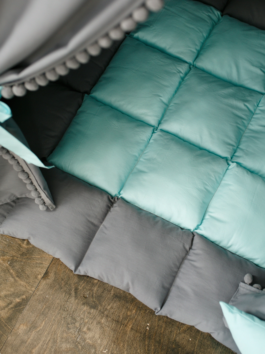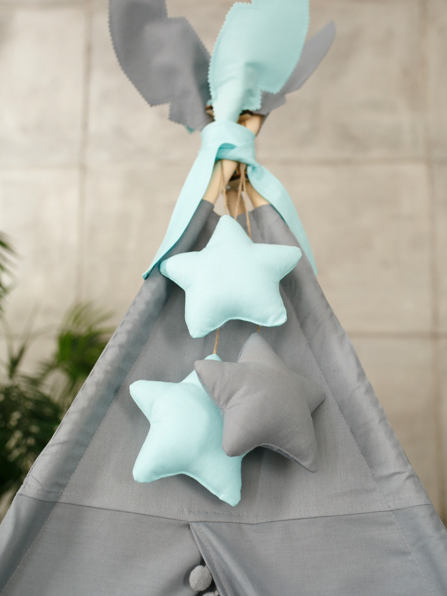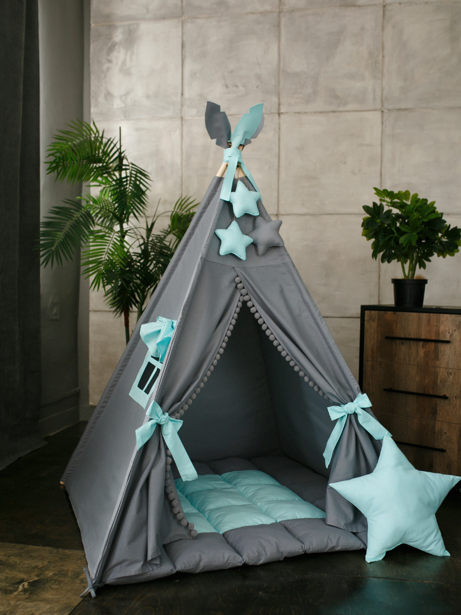 Купить Вигвам детский с ковриком, окошком , подушкой и антискладывателем темно-серый/мятный