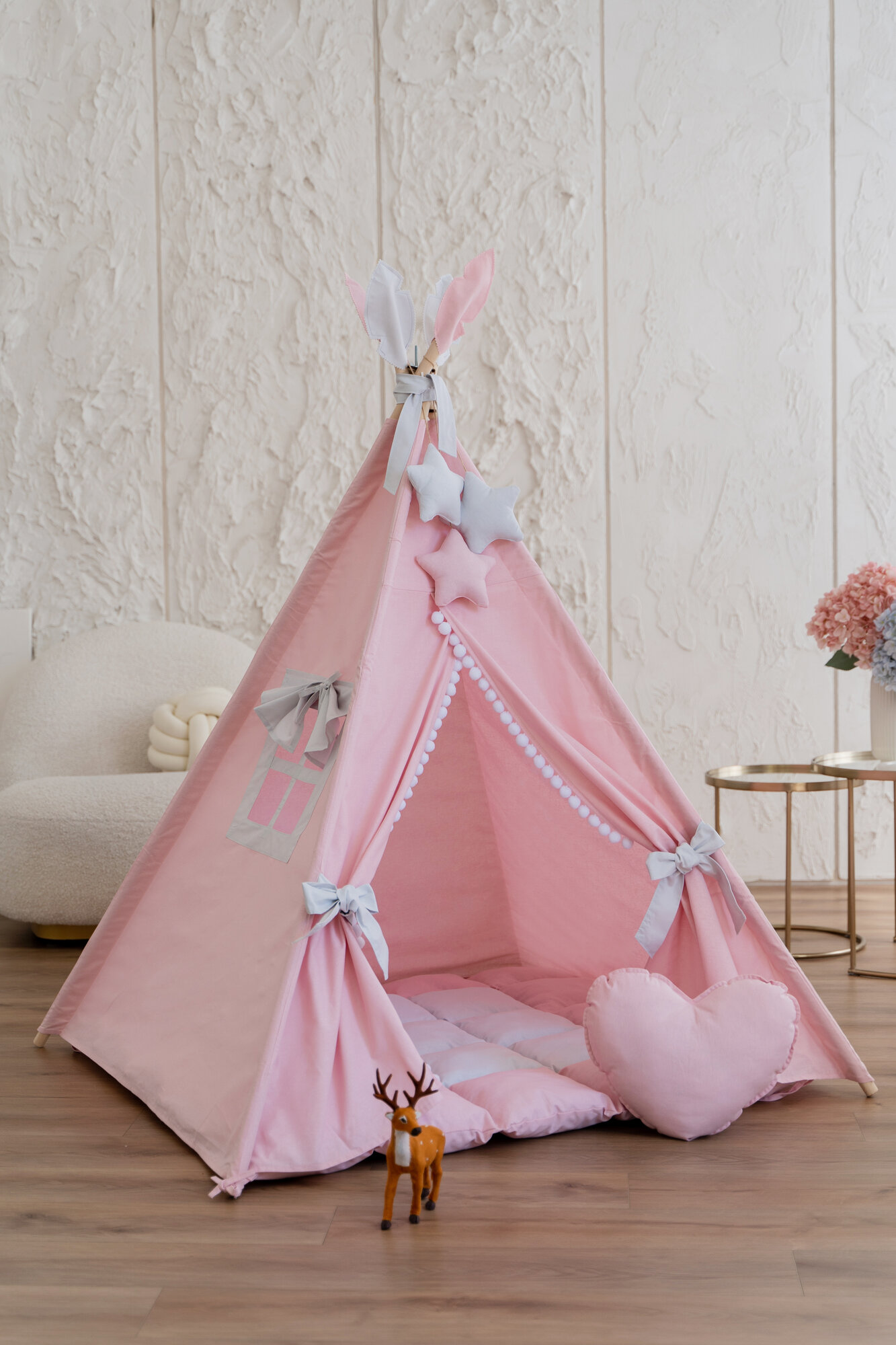 Купить Вигвам детский с ковриком, окошком , подушкой и антискладывателем розовый