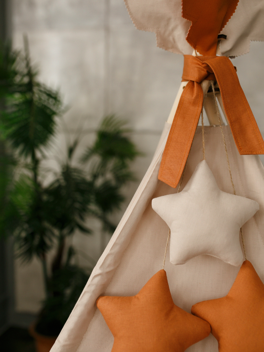 Купить Вигвам детский с ковриком, окошком , подушкой и антискладывателем бежево-горчичный