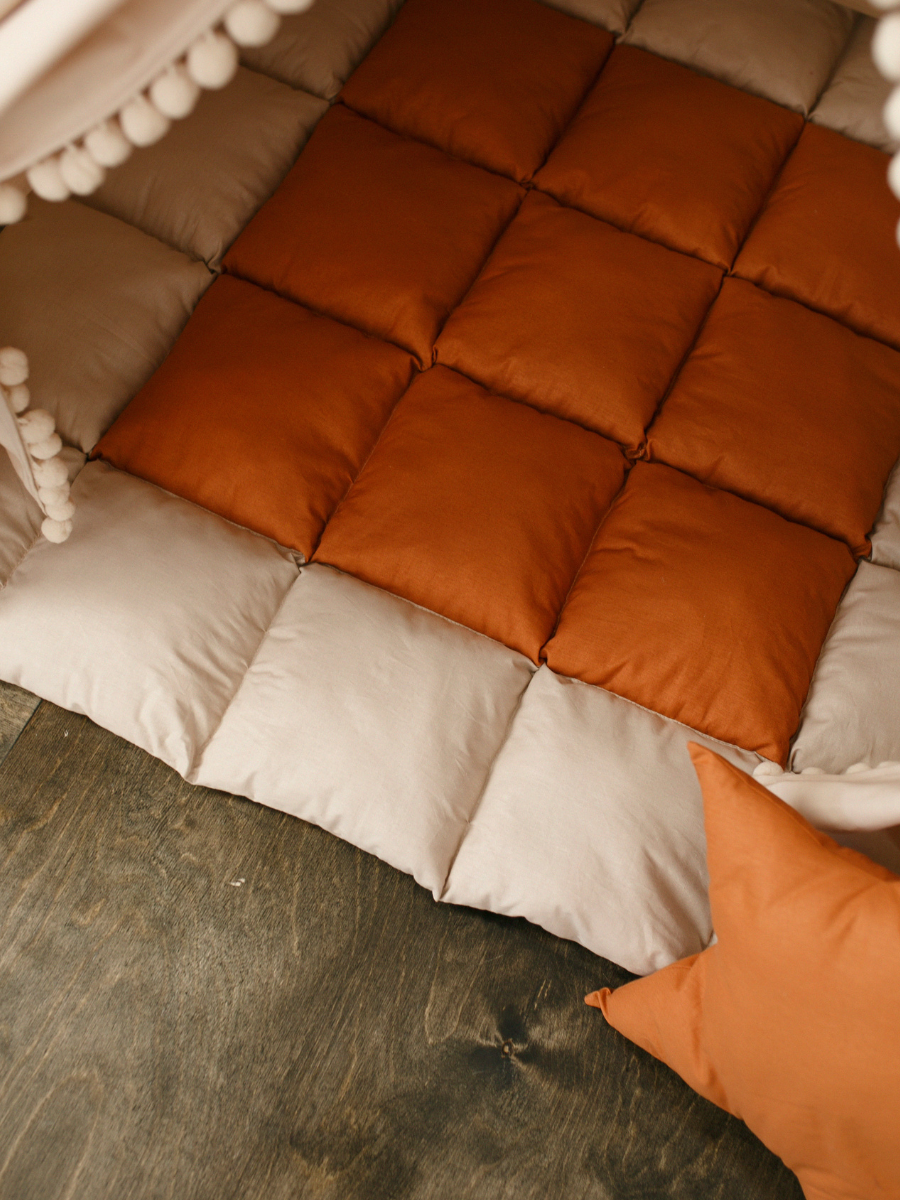 Вигвам детский с ковриком, окошком , подушкой и антискладывателем бежевый светлый с горчичным