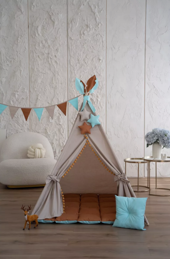СохранитьВигвам детский с ковриком, окошком , подушкой и антискладывателем бежевый светлый с горчичным интересное: