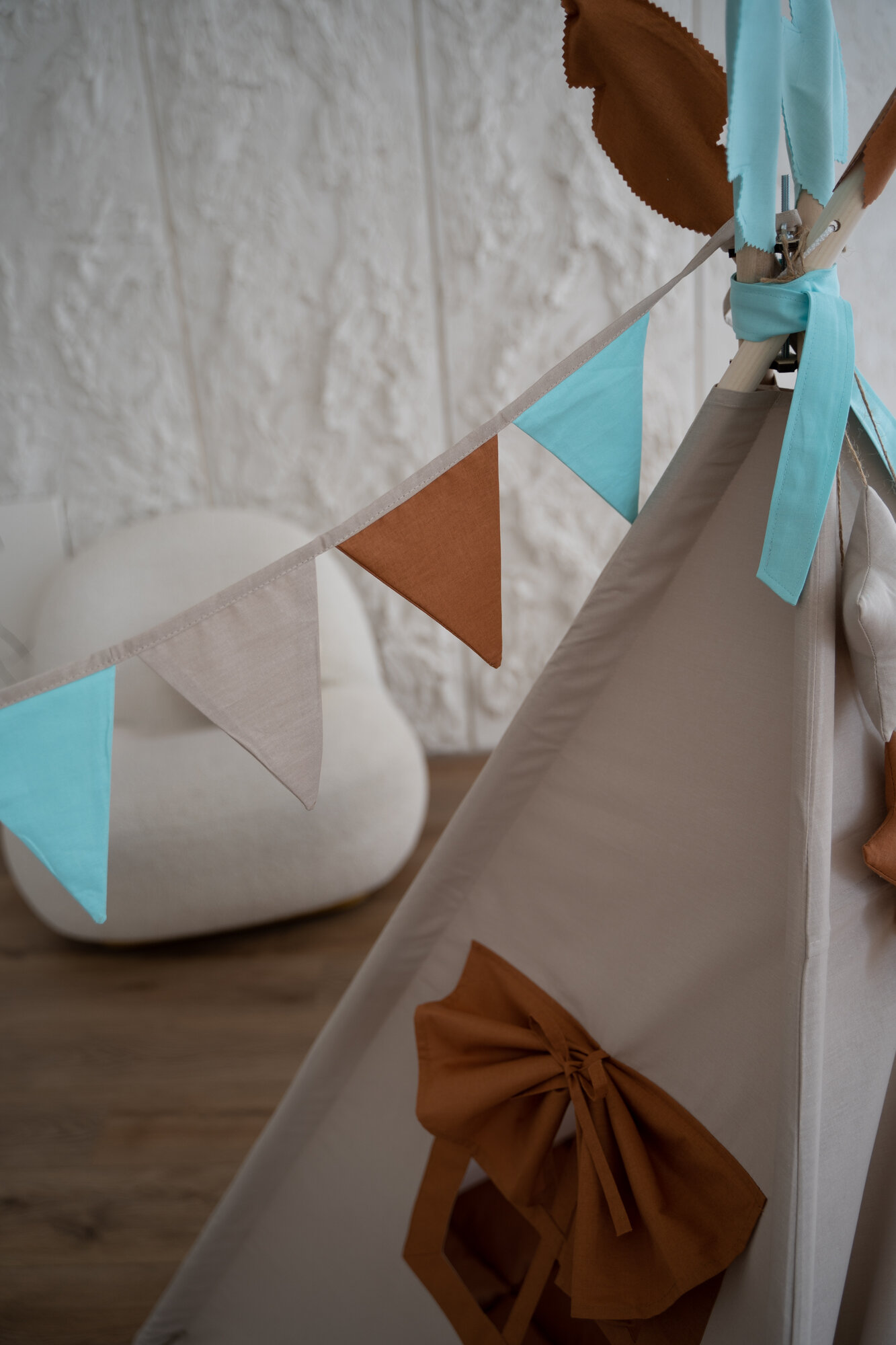 Вигвам детский с ковриком, окошком , подушкой и антискладывателем бежевый светлый