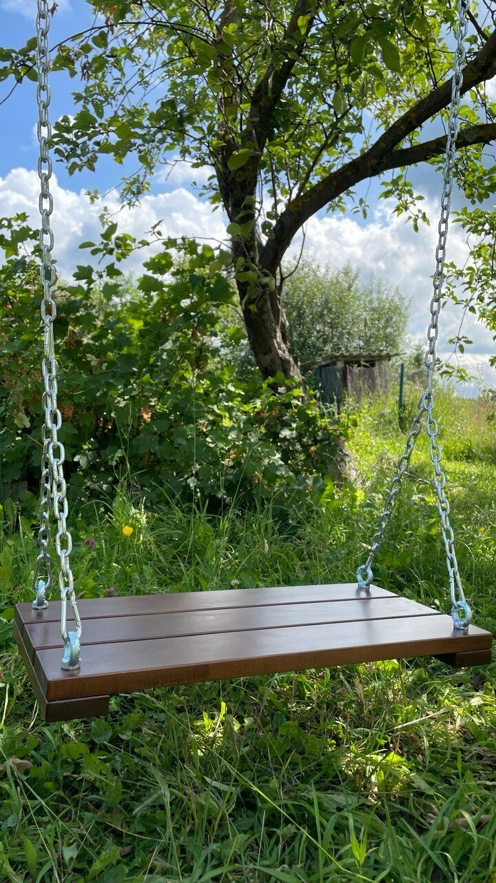 Садовые деревянные качели из липы на цепях. 600x300x45. Коричневые интересное: