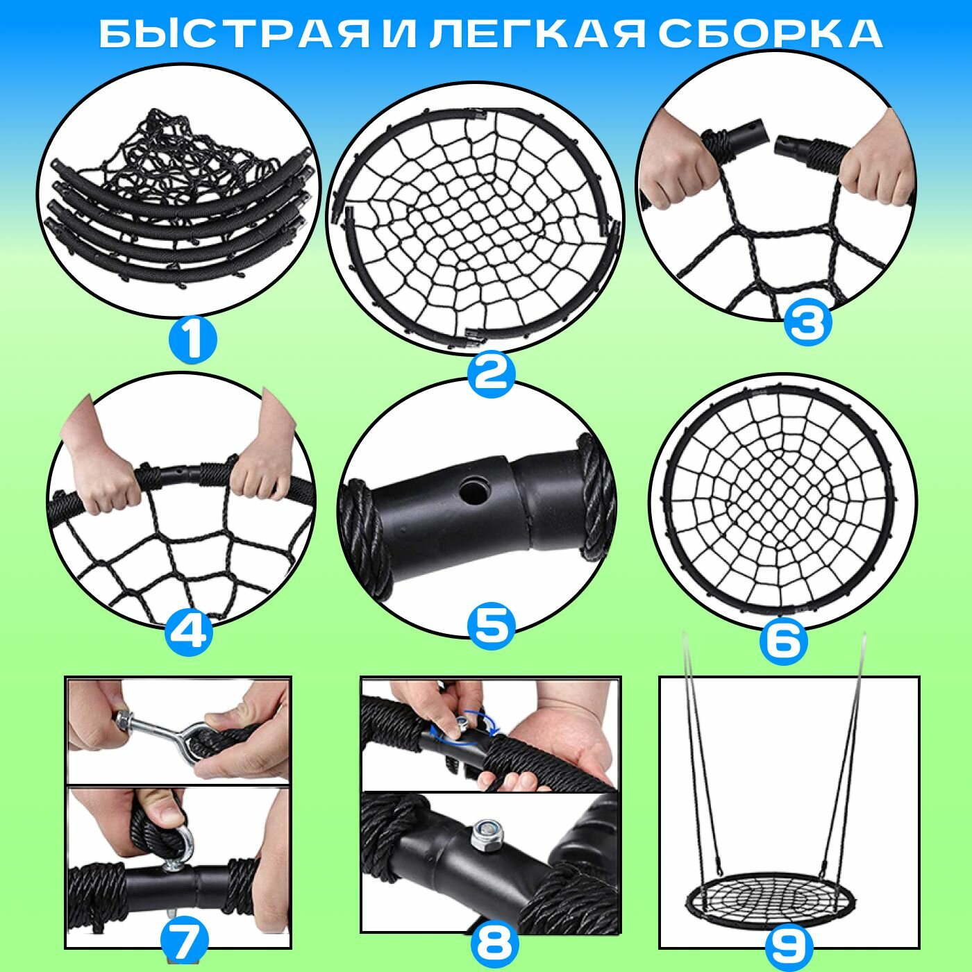 Качели гнездо паутинка 80 см, высота до 180 см, нагрузка до 200 кг, подвесные для дачи и сада, для взрослых и детей интересное:
