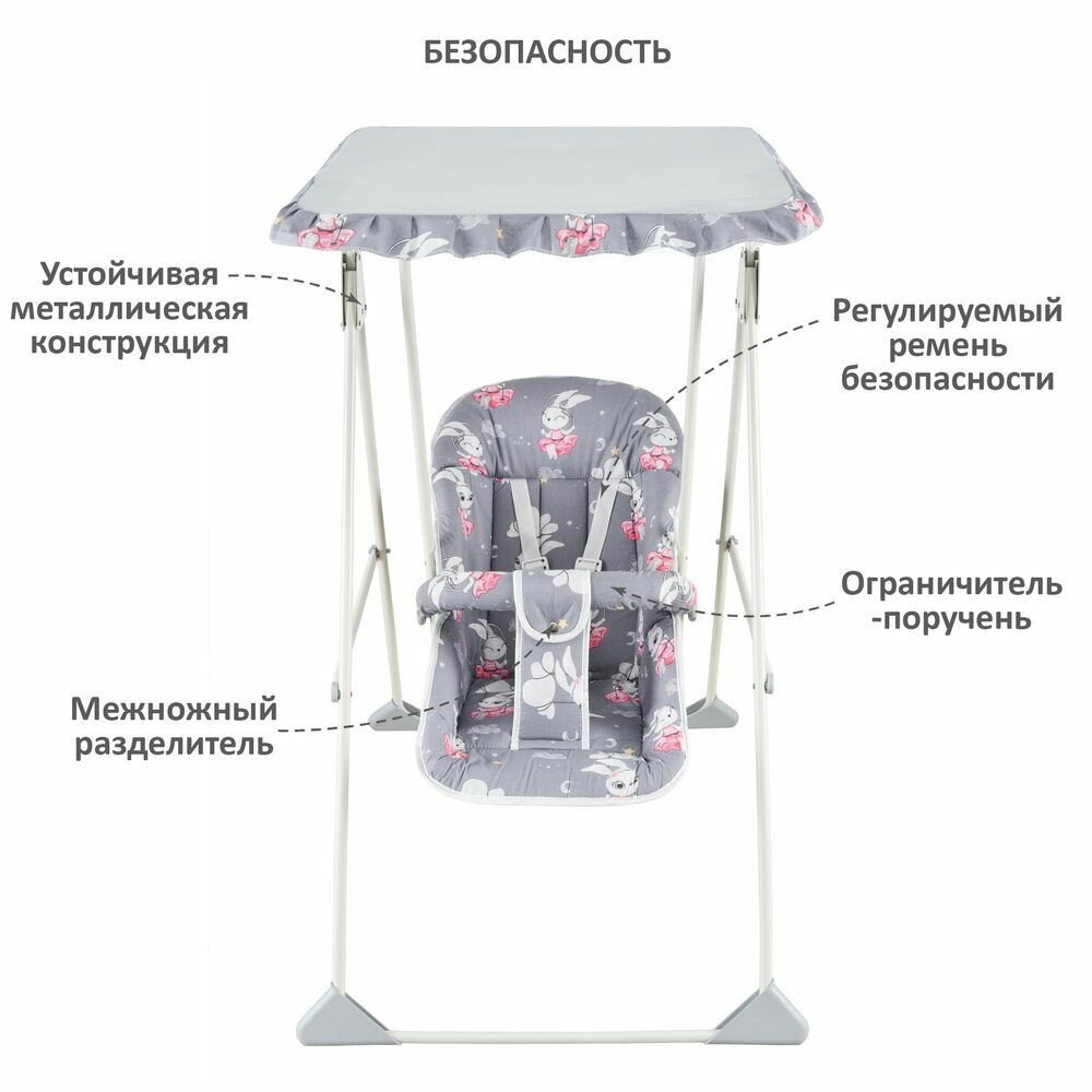 Детские качели Globex Ветерок с тентом Зайчата интересное: