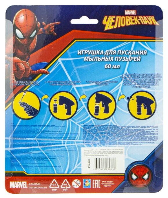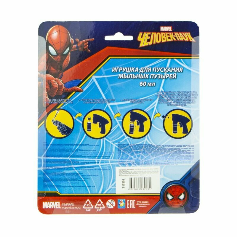 Купить 1toy Человек Паук, мыл. пистолет, светится в темноте, бут. 60 мл, блистер