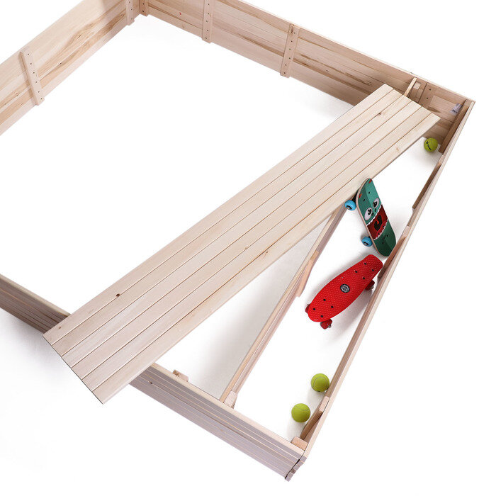 Купить Песочница детская деревянная, без крышки, 150 × 150 × 30 см, с ящиком для игрушек, сосна, Greengo