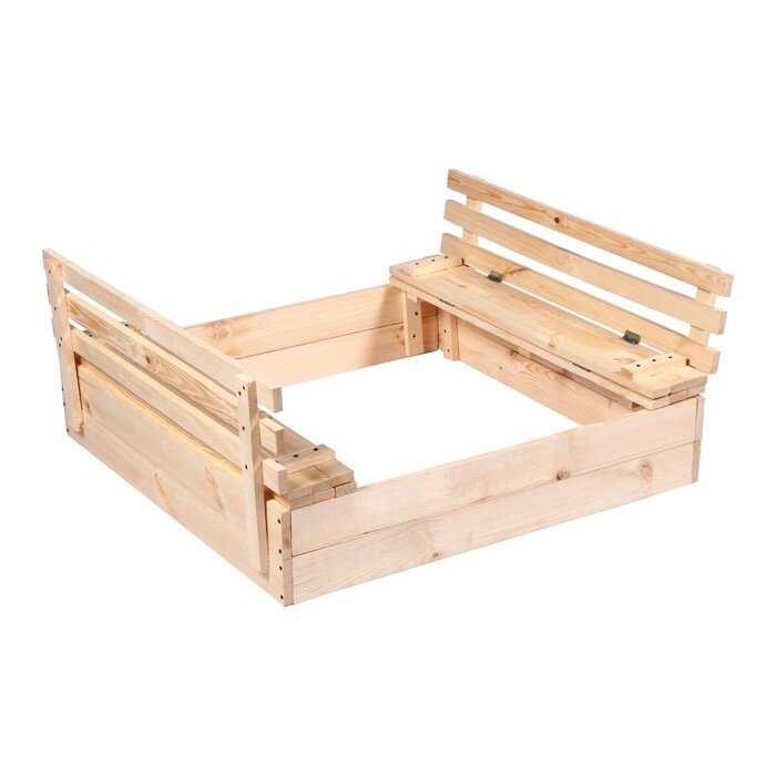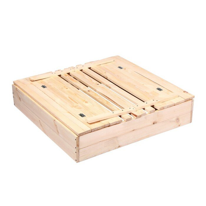 Купить Песочница детская деревянная, с крышкой, 100 × 100 × 18 см, без покраски, лавочки (2 шт.), Greengo