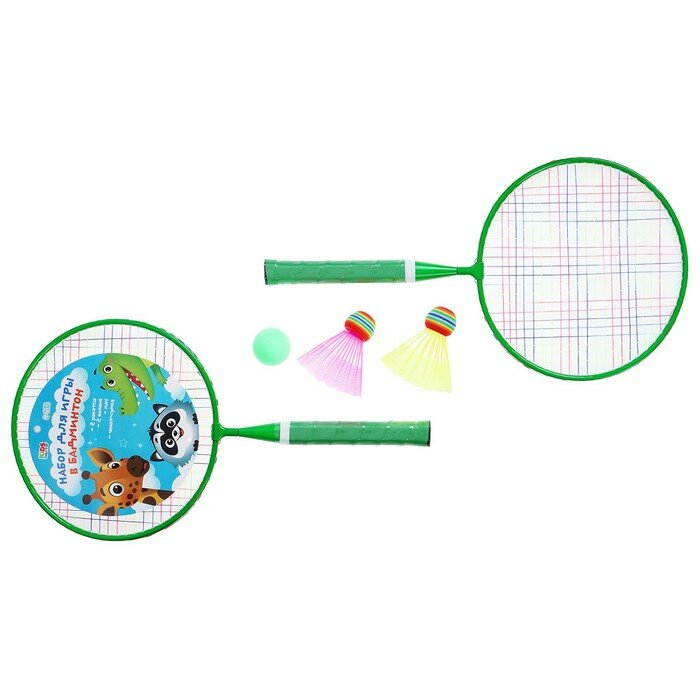 Набор для бадминтона ONLYTOP «Друзья»: 2 ракетки 44 см, 2 волана, мяч, чехол, цвет зелёный интересное: