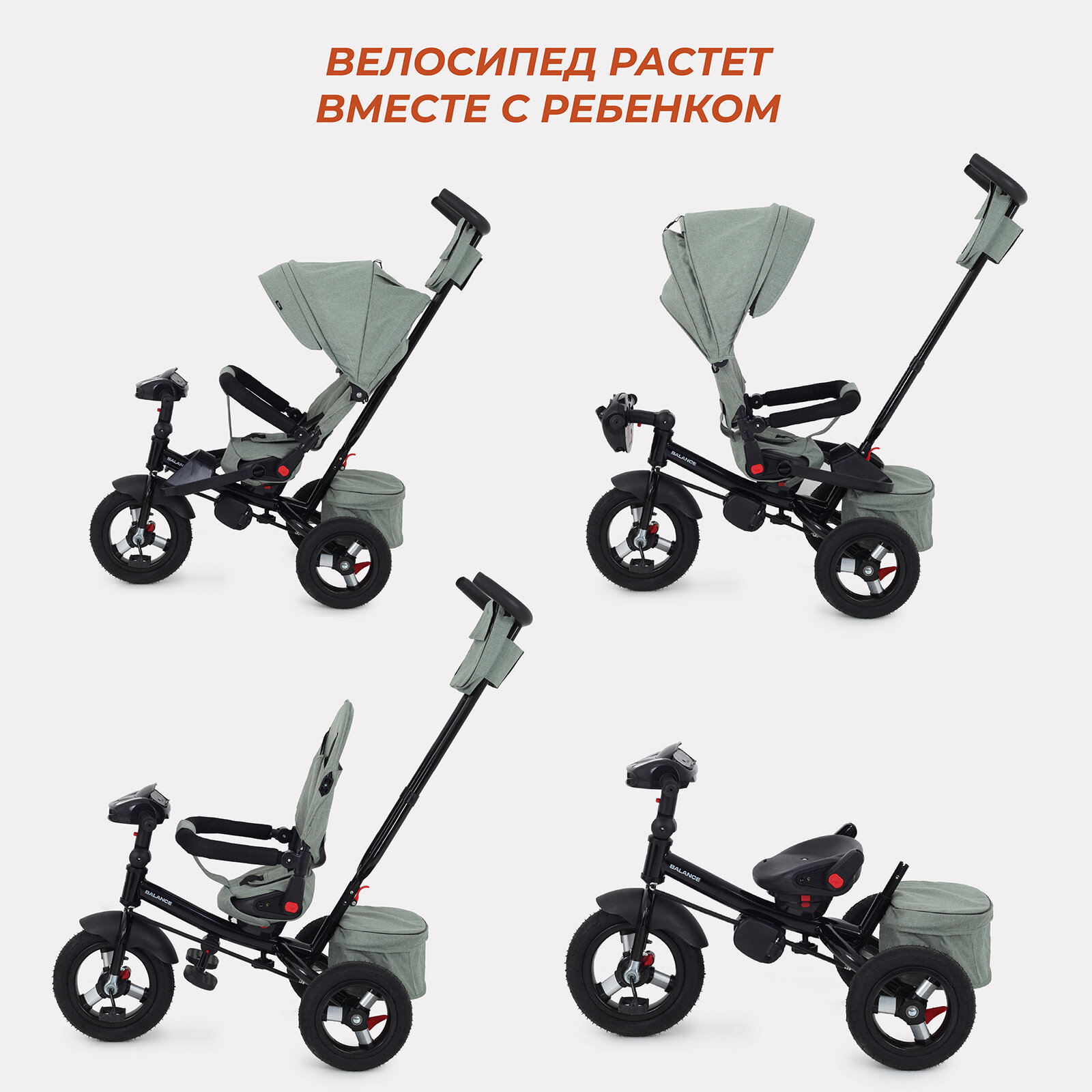 Велосипед детский трехколесный с родительской ручкой RANT BALANCE Green интересное: