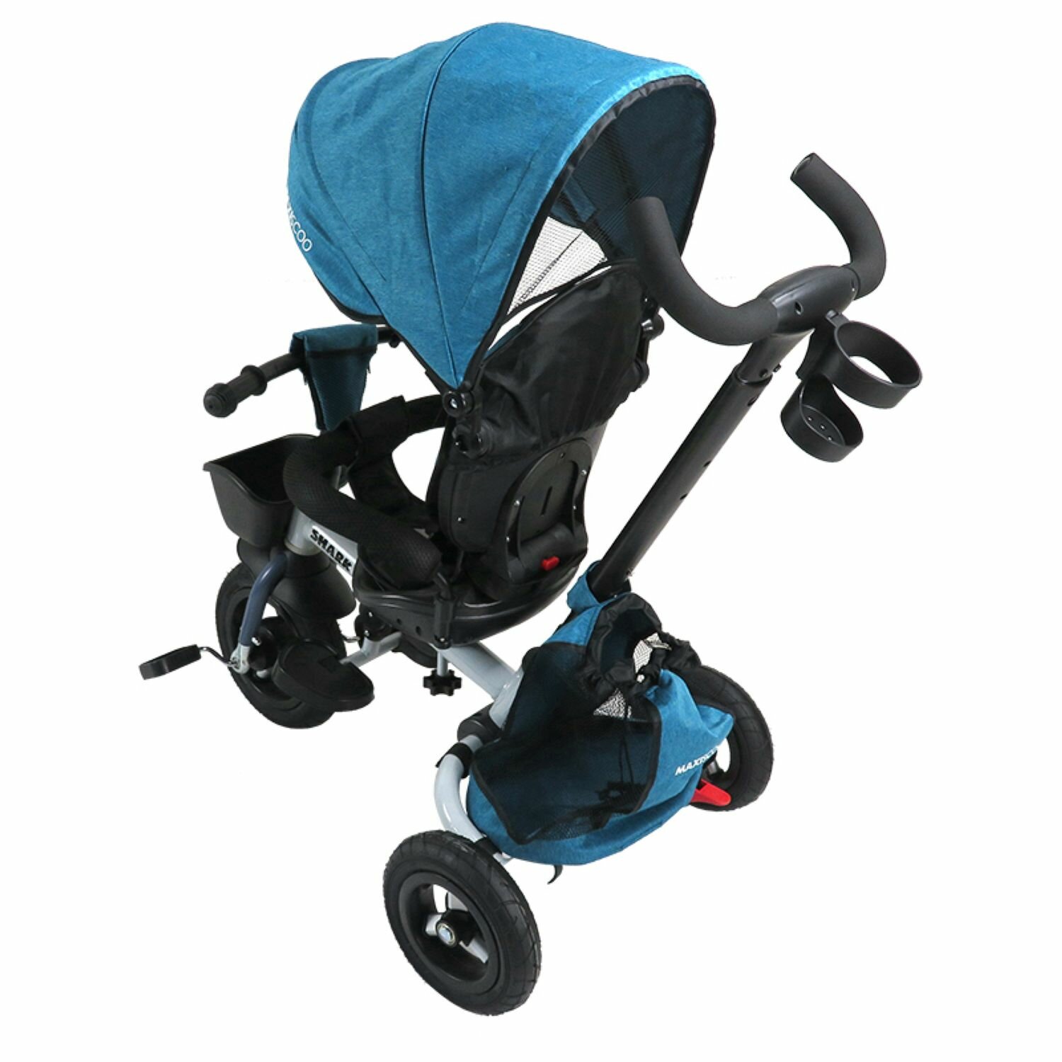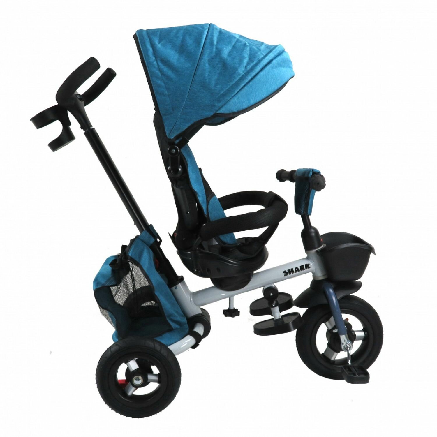 Велосипед Детский Трехколесный Складной с Капюшоном SHARK Мягкое Сиденье, Корзинка, Руль с кармашком, Ограничительный Бампер и Ремни Безопасности 2023