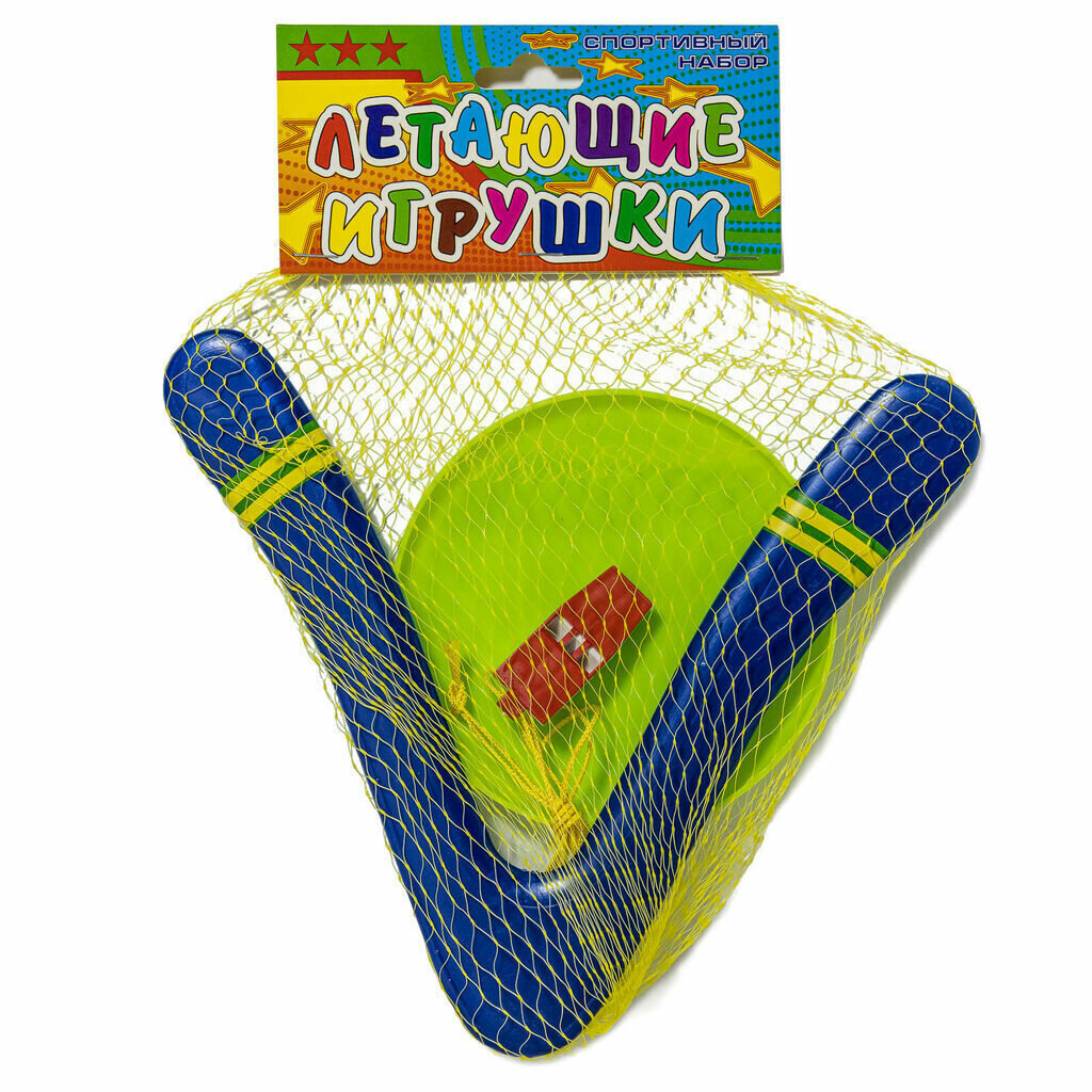 Купить Набор игр. Летающая тарелка "Малая", Бумеранг "Фигурный", Свисток на веревке. Комплект из 2 тарелок