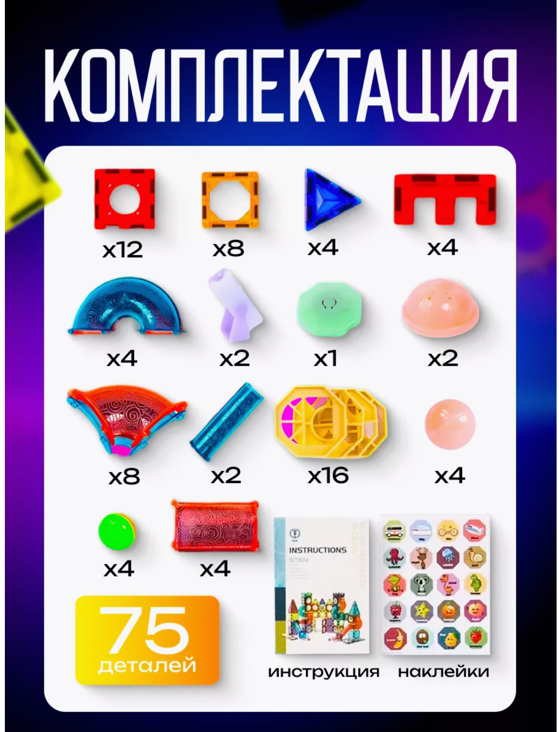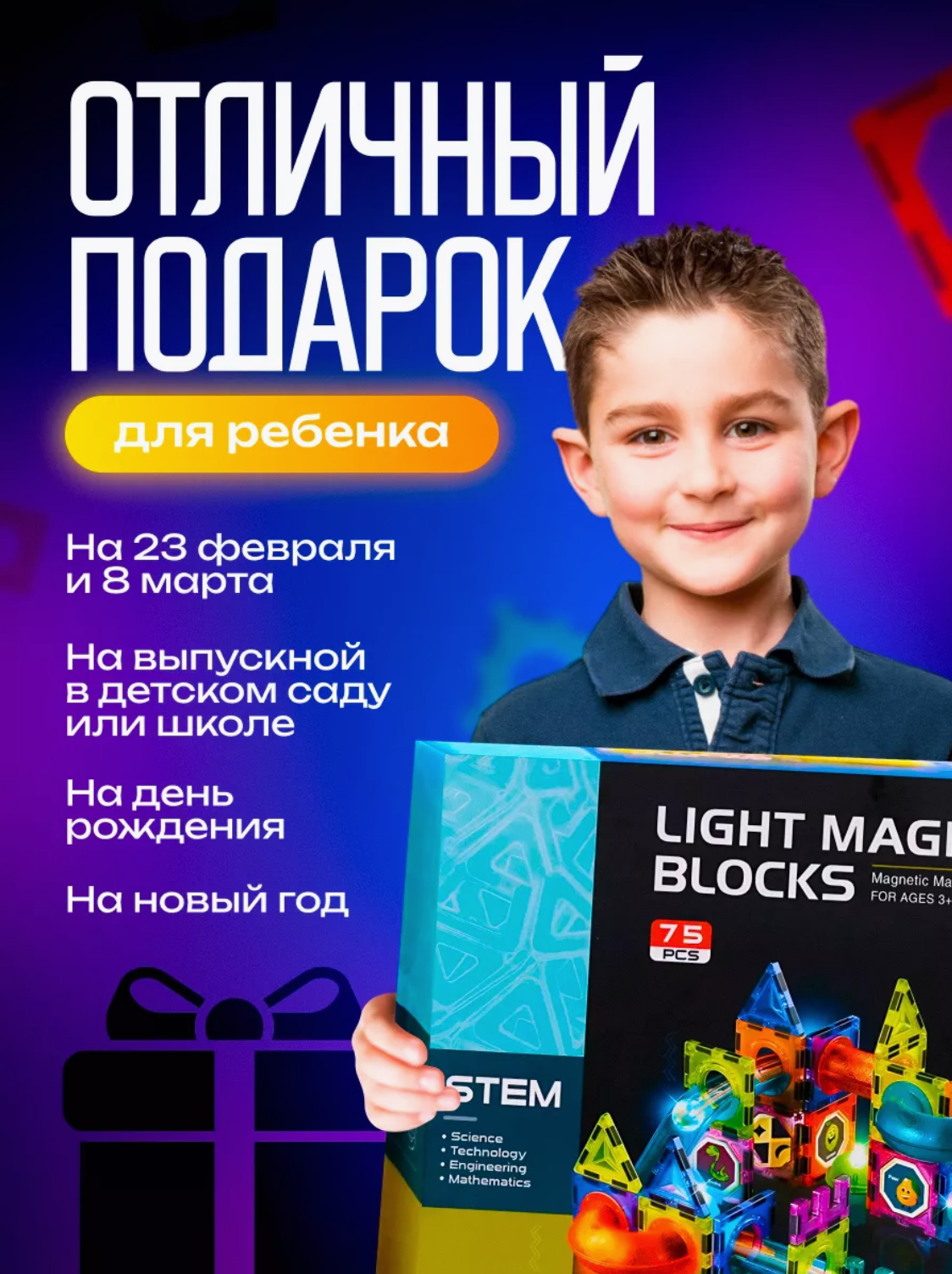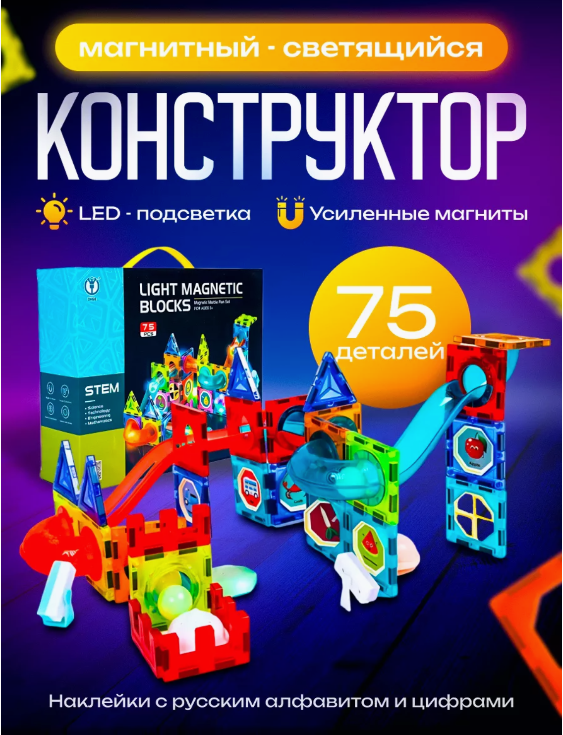 СохранитьКонструктор магнитный светящийся 75 деталей интересное:
