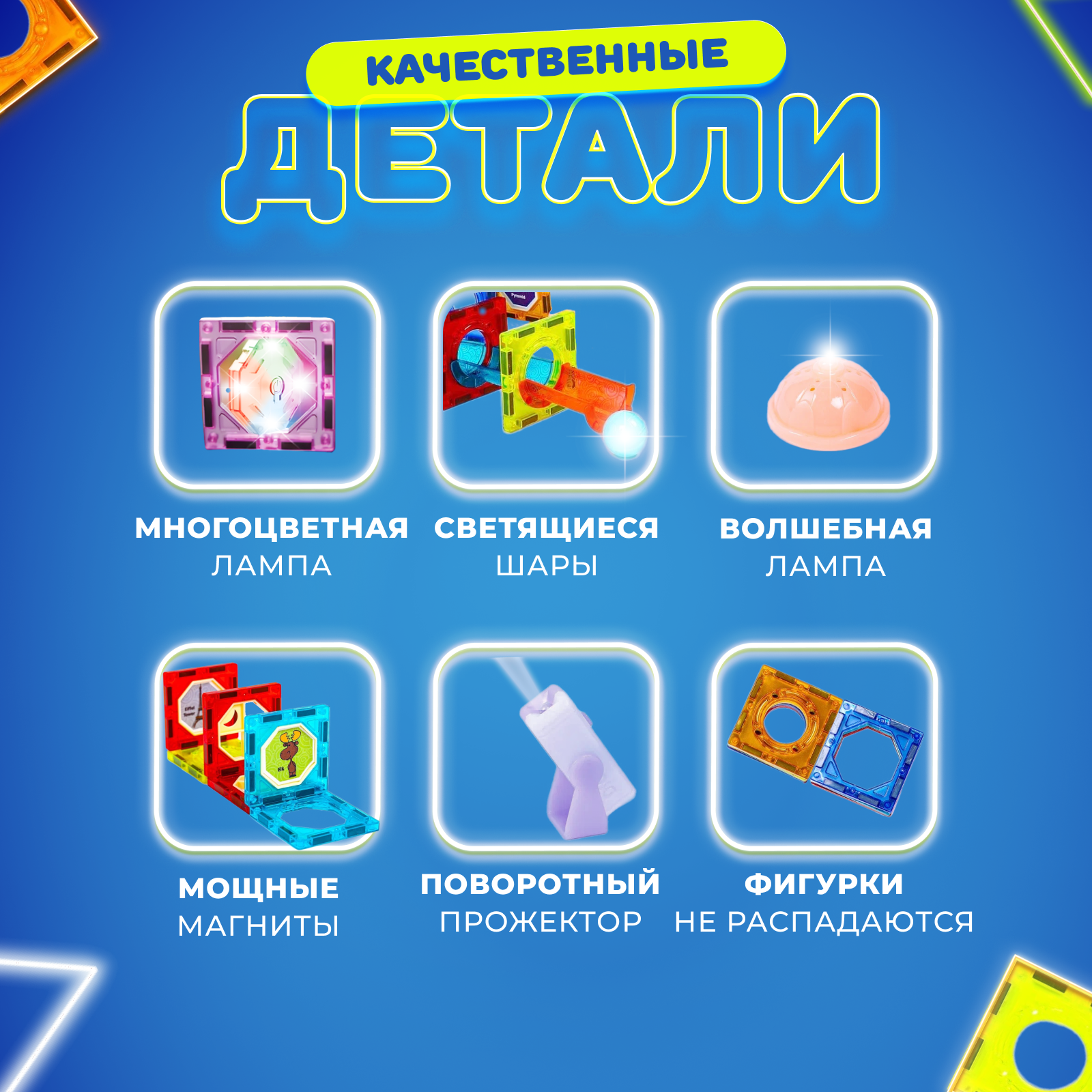 | Дополнительная информация | з варианта подсветки, светящиеся шарики, поворотный прожектор, волшебный фонарик, сверхсильные магниты, фигурки не распадаются |