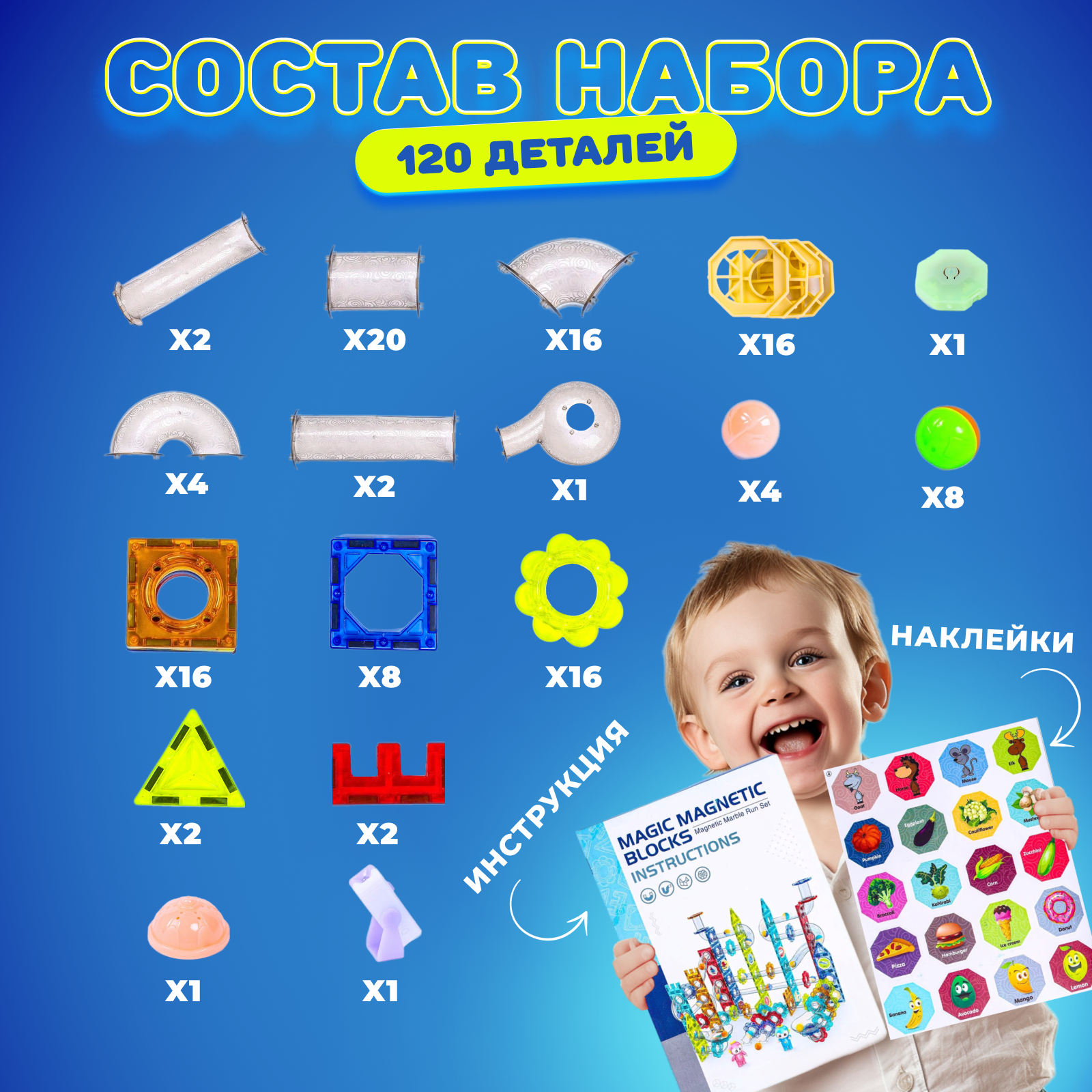 Магнитный конструктор детский 120 деталей / Конструктор развивающий