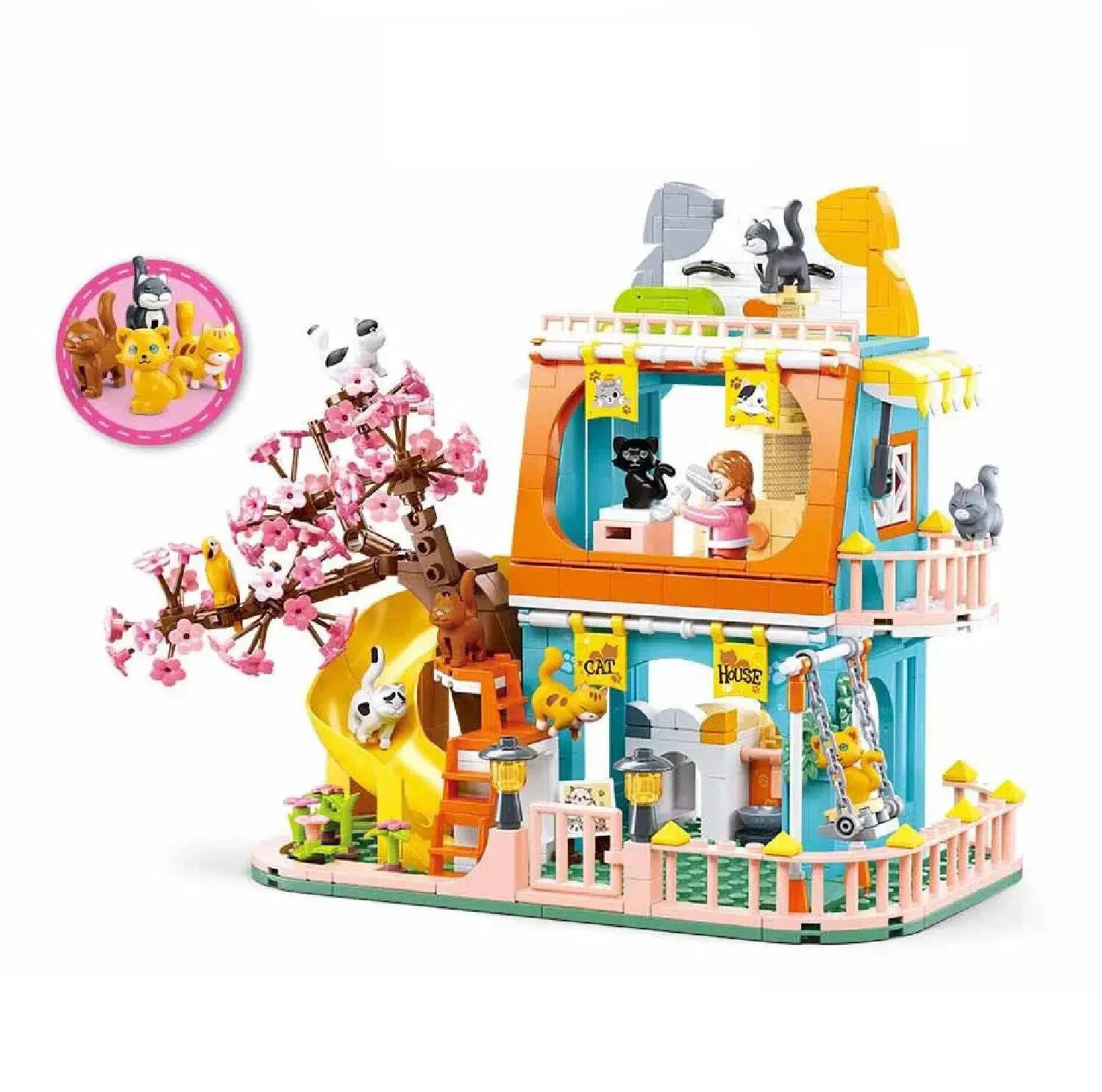 Конструктор Sluban серия Розовая мечта Домик для любимых котиков 571 деталь M38-B1089