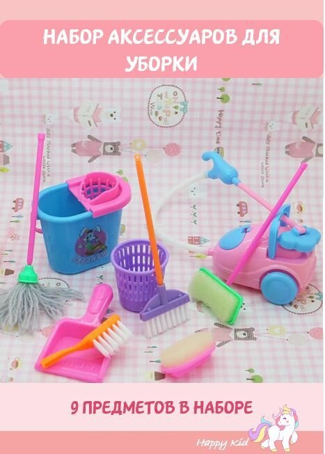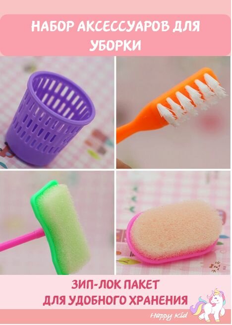 Набор для кукольного домика "Хозяйка Барби", аксессуары для уборки игрушечного жилья Барби интересное: