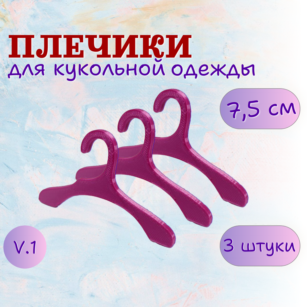 Вешалки / плечики набор для кукольной одежды 3 штуки / ширина 7,5 см. Блестящий розовый. (Вариант №1) интересное: