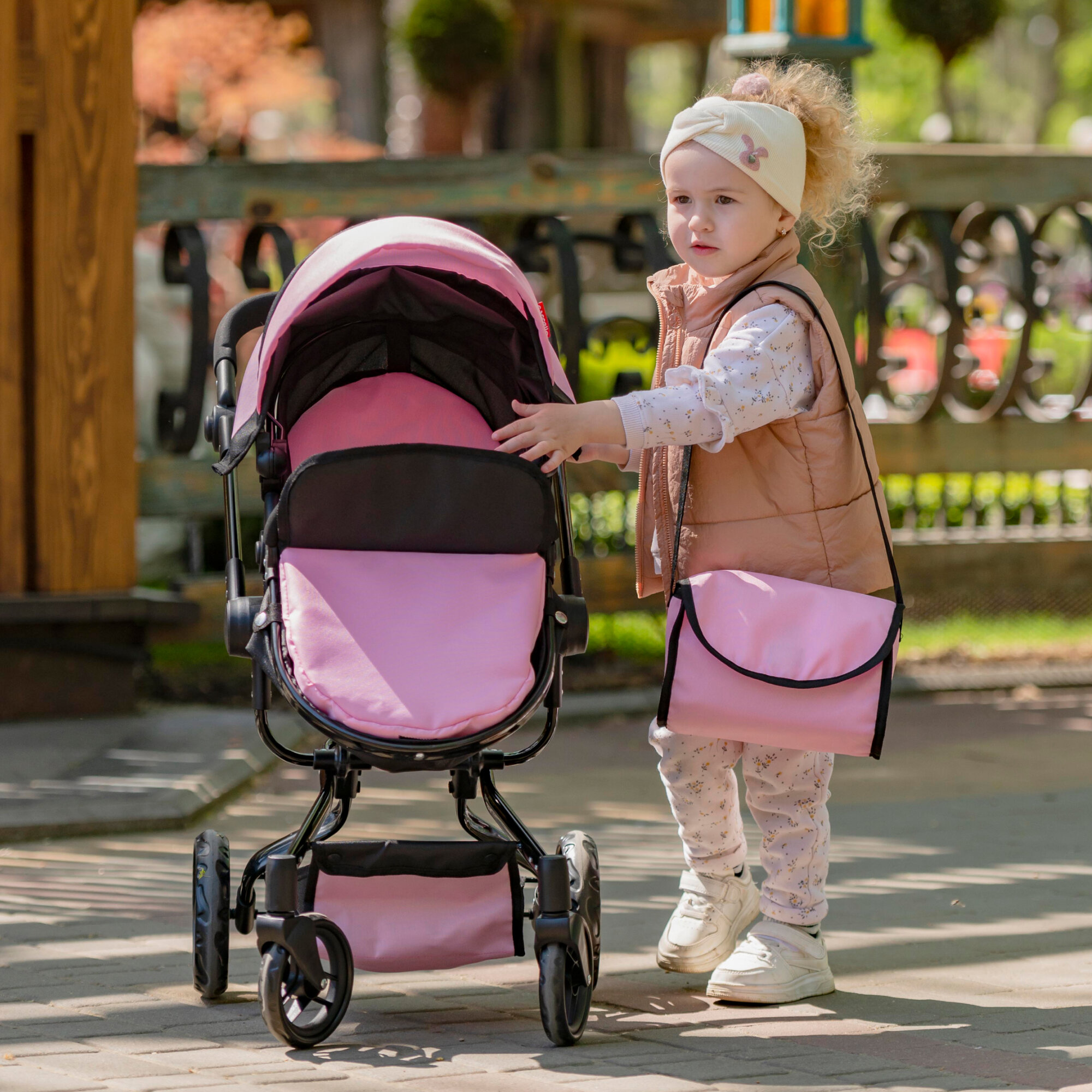 Коляска-трансформер для кукол Carrello "Fortuna", с поворотными колесами и складным капюшоном, розовая