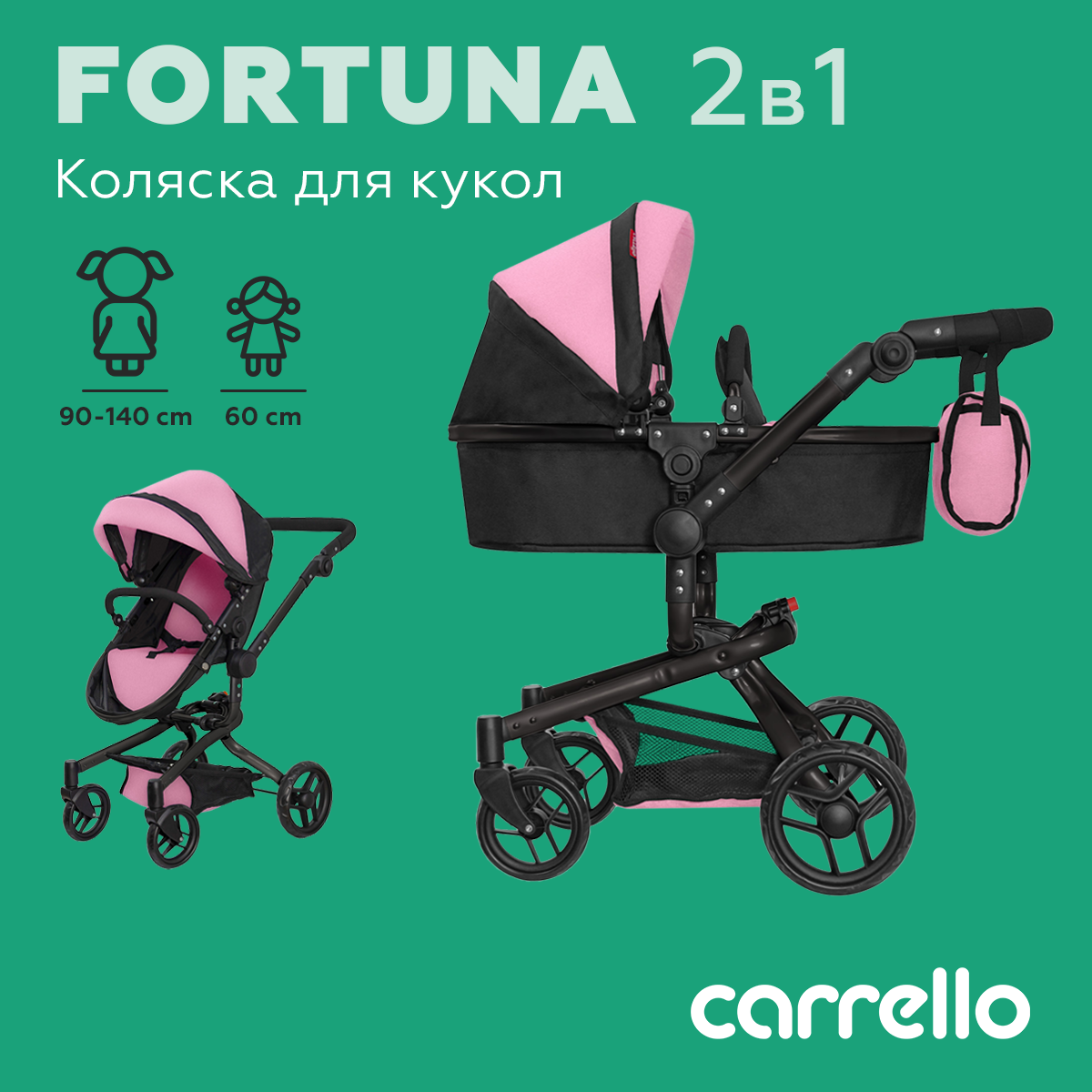 Коляска-трансформер для кукол Carrello Fortuna, складной капюшон, поворотные колеса, розовая с черной рамой