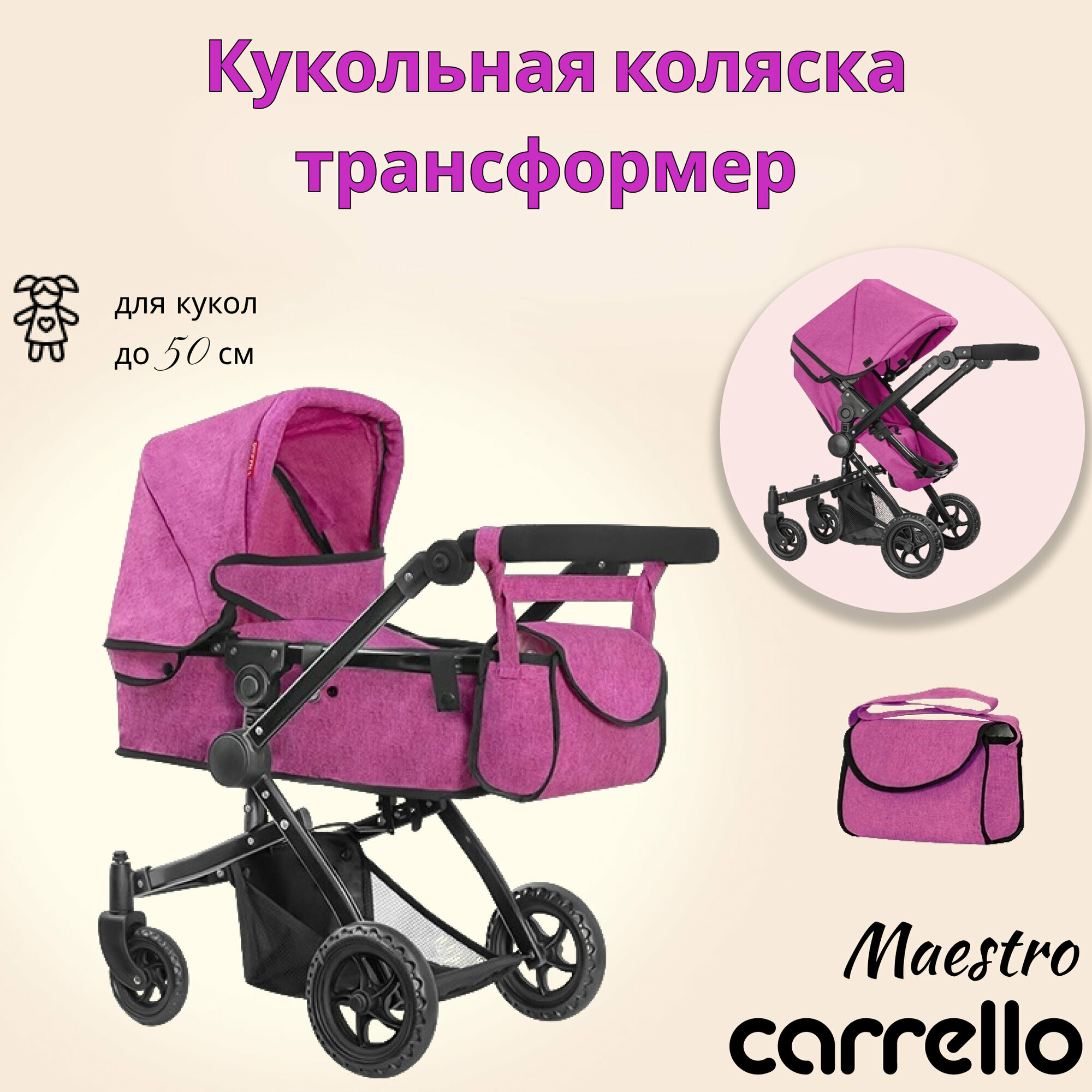 Коляски для кукол Carrello Maestro 2 в 1, розовая интересное: