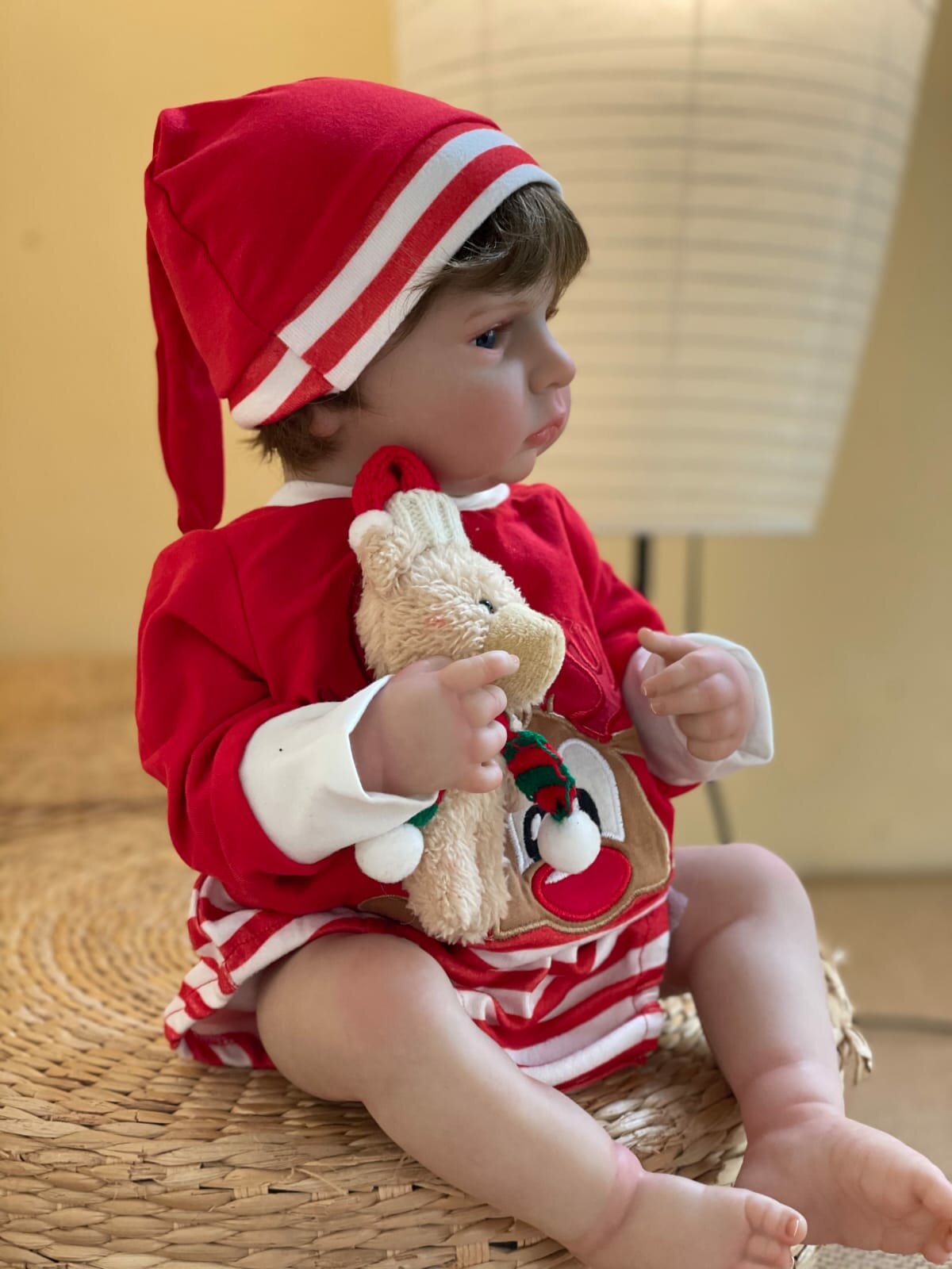 Кукла Реборн Виниловая 48см, в костюме, можно Купать. Кукла Reborn + серьги-гвоздики + браслетик