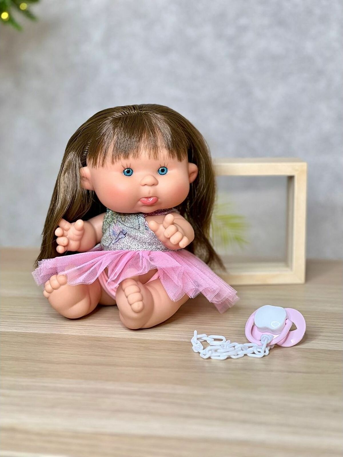 | Комплектация | кукла, одежда, пустышка, бутылочка, подгузник |
