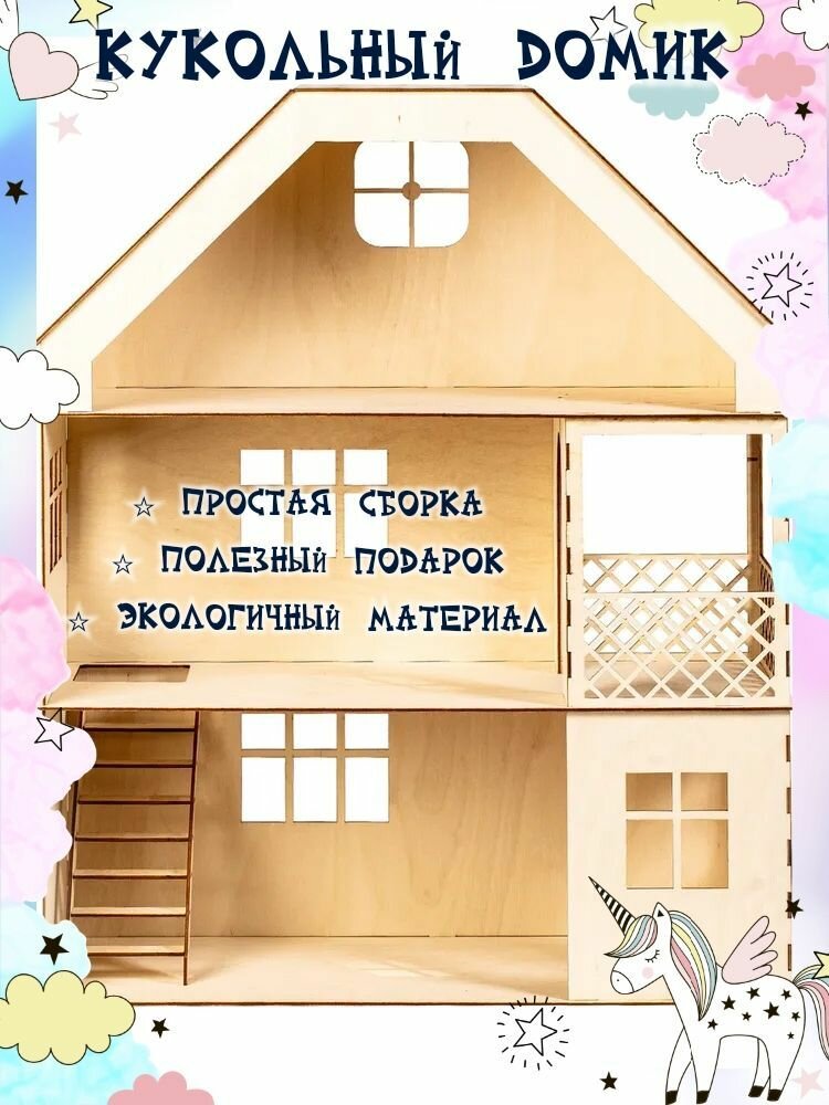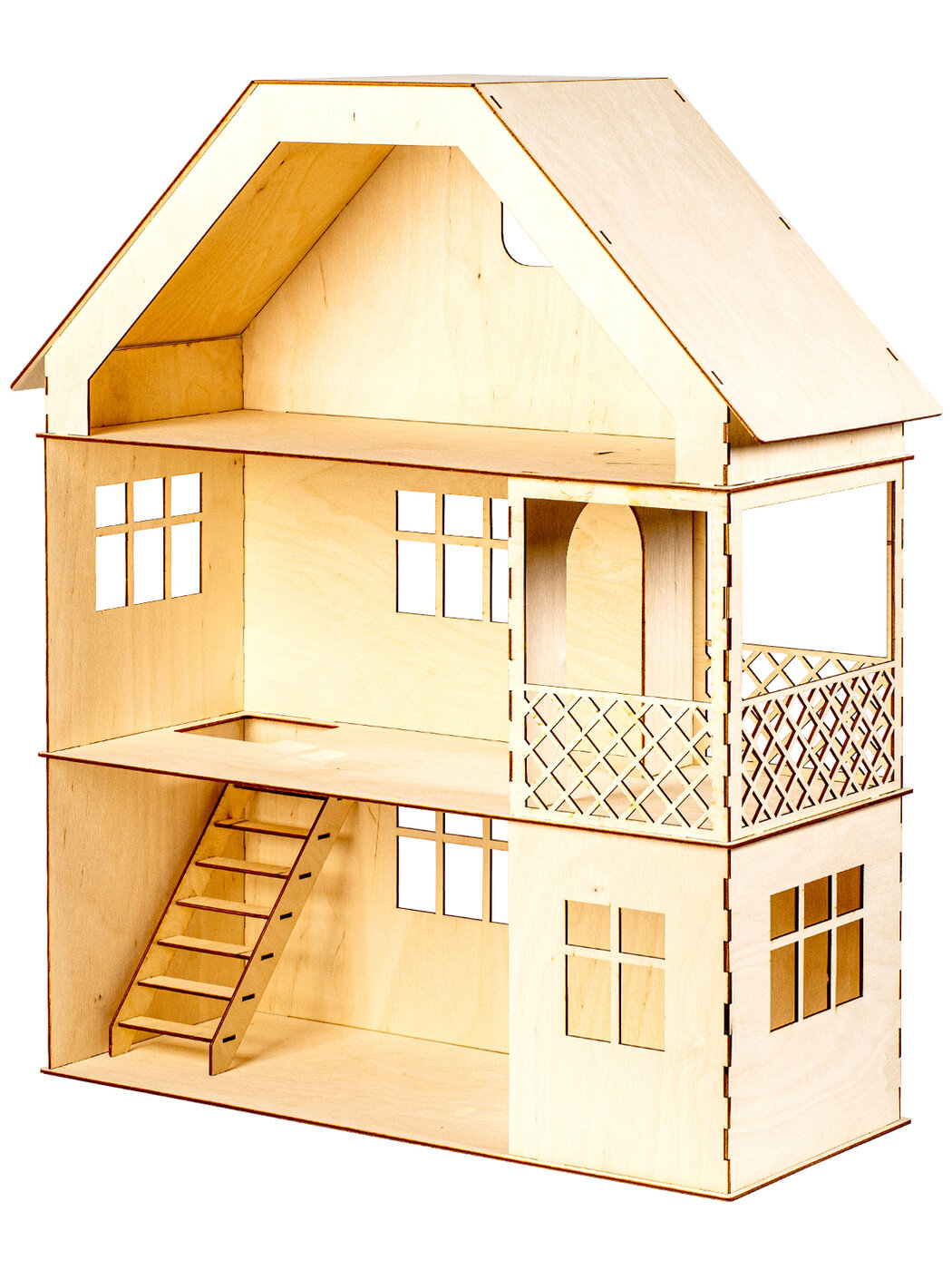 Купить Деревянный Кукольный домик "Малый" (2 этажа с мансардой) для кукол 7-13 см