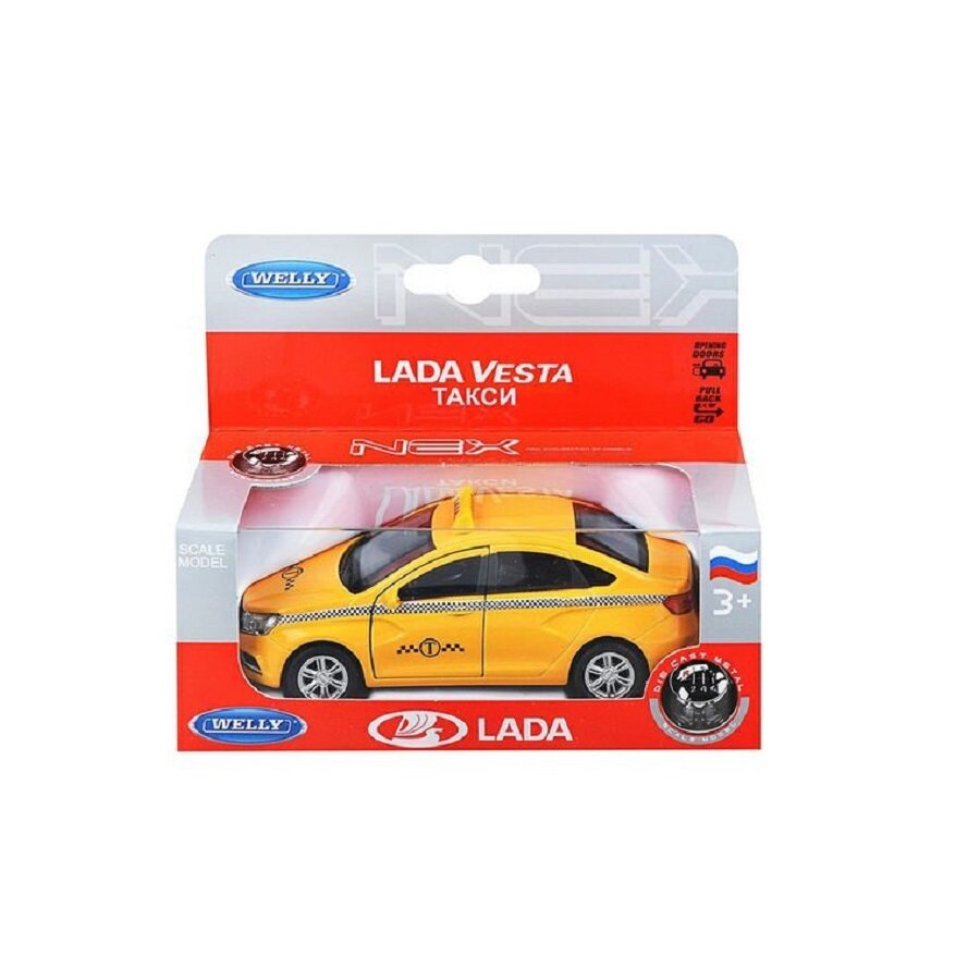Легковой автомобиль Welly Lada Vesta Такси (43727TI) 1:34, 11 см, желтый интересное: