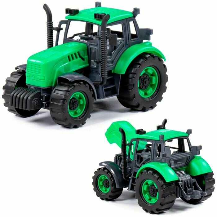 Трактор "Прогресс" инерц. зелёный в лотке 94162 интересное: