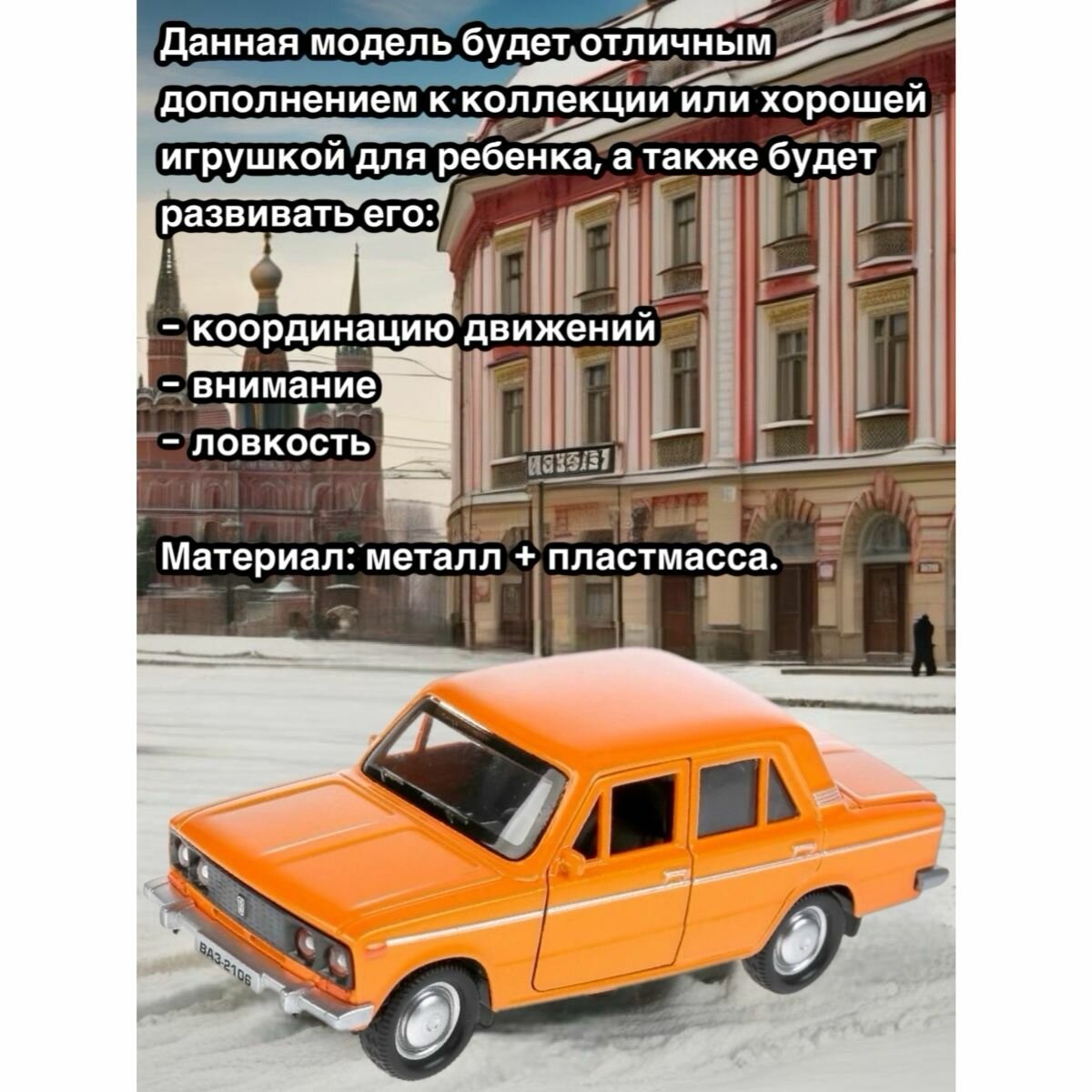 | Особенности | батарейки в комплекте / коллекционная / открывается капот/багажник / открываются дверцы / советские машинки / звук / свет |