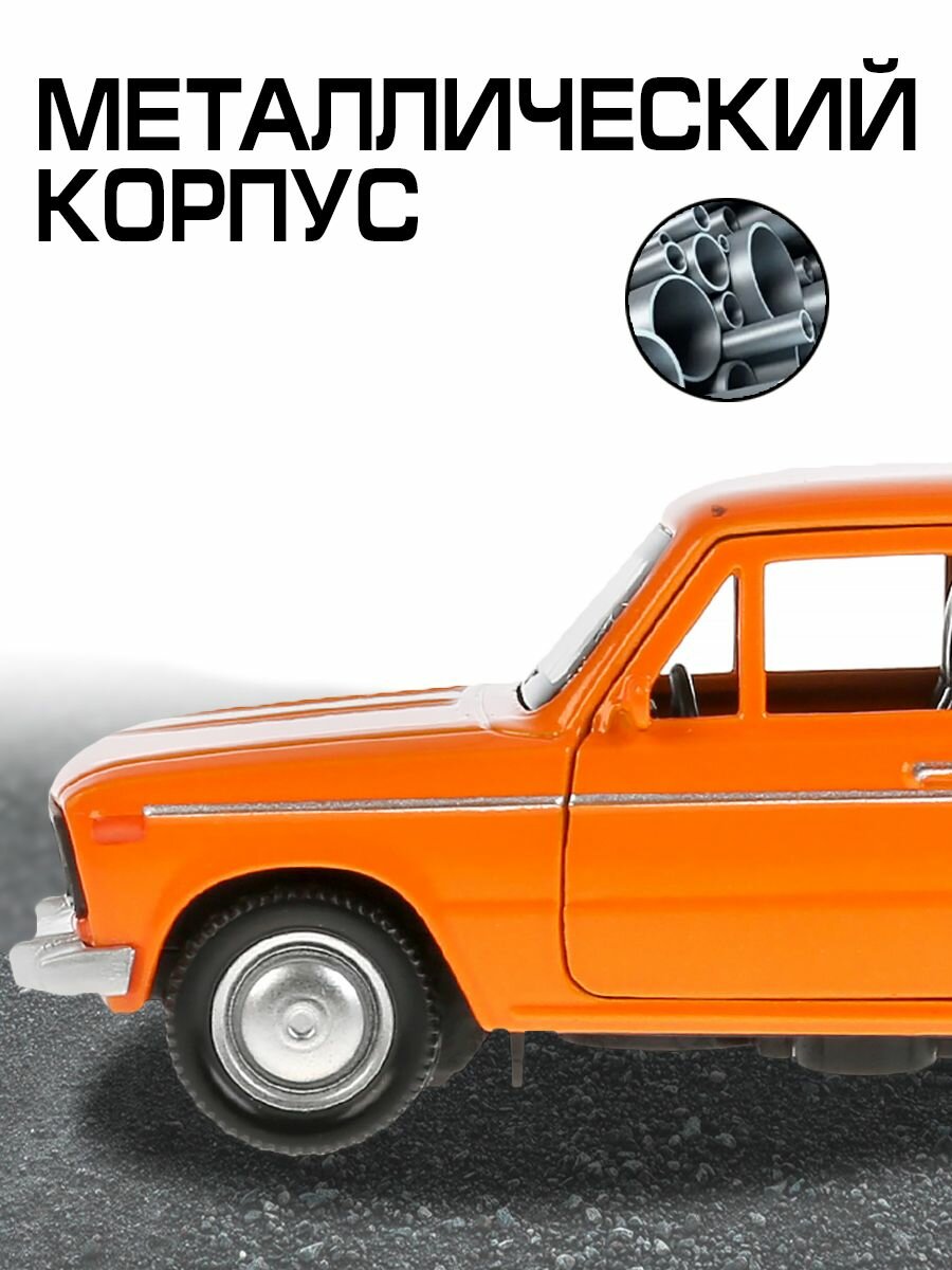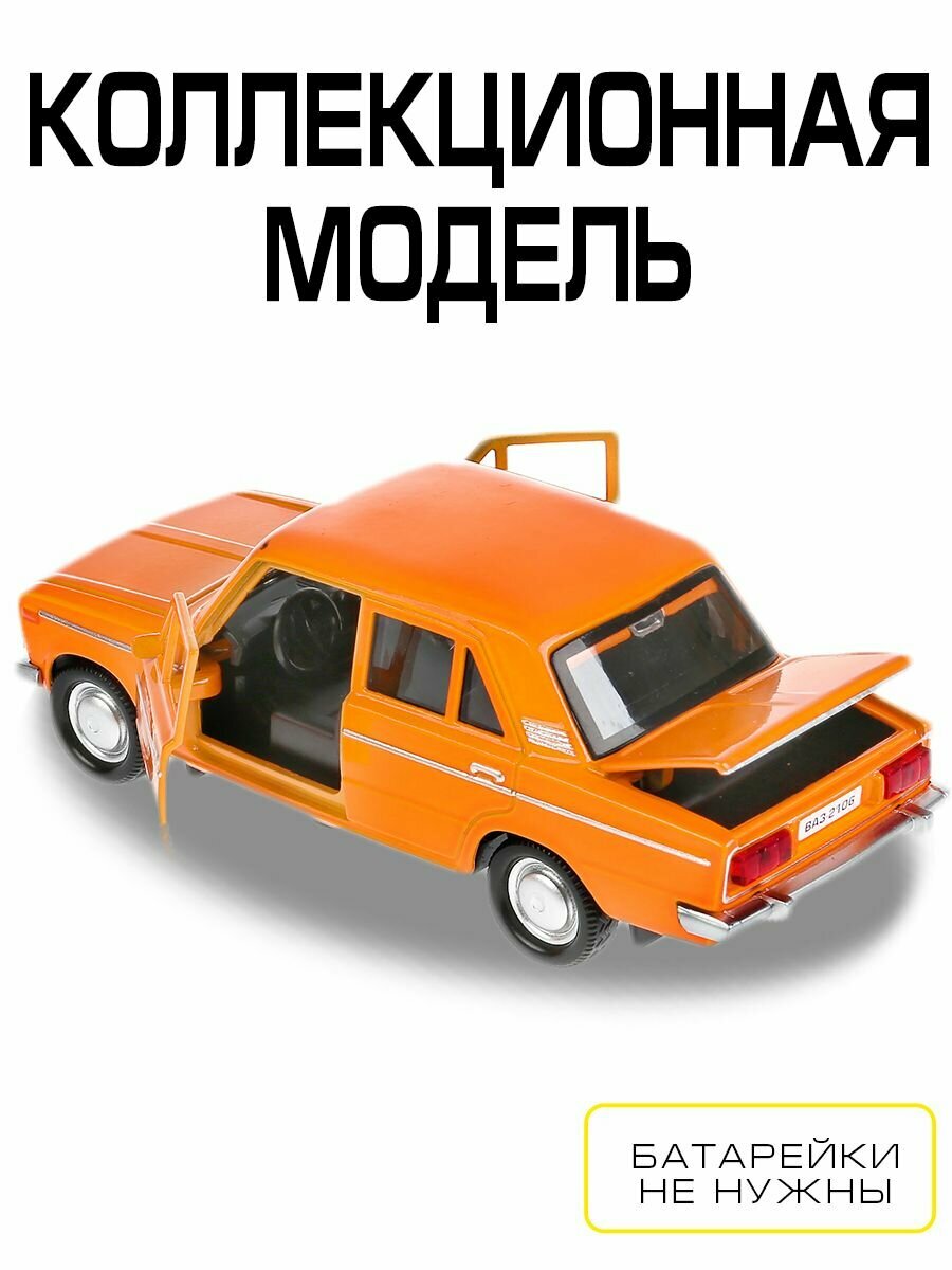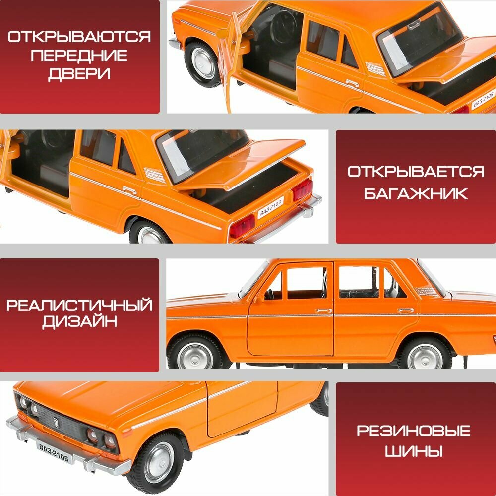 Машинка детская ВАЗ 2106 Жигули 12 см, Технопарк, оранжевая, открываются двери и багажник, металлическая