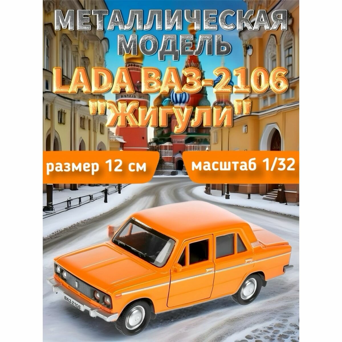 Купить Машинка металлическая LADA ВАЗ-2106 "Жигули" шестерка, оранжевая, 12 см