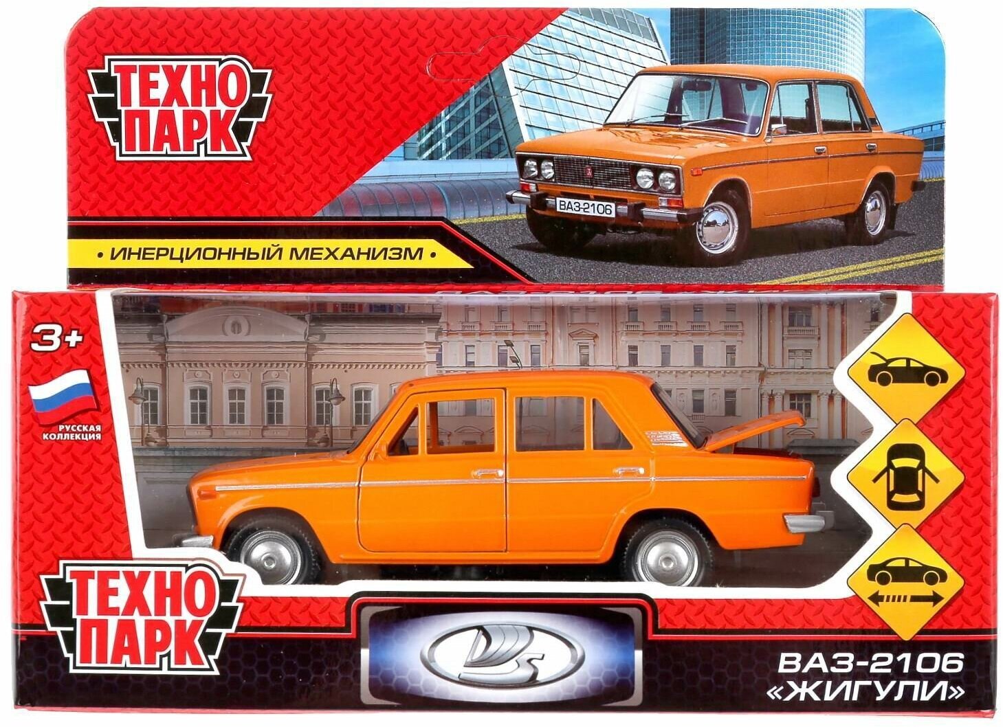 Машинка игрушка детская для мальчика ВАЗ-2106 Жигули Технопарк металлическая модель коллекционная инерционная с открывающимися дверьми оранжевый 12 см