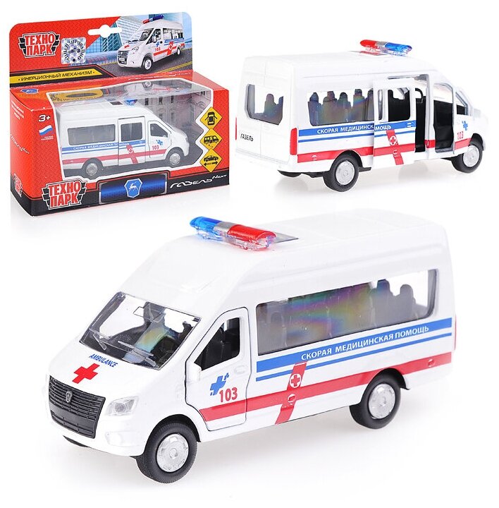 Купить Машина металл ГАЗ Газель NEXT Скорая 12см, откр.дв.кабины и бок.дверь.,) инерц., в коробке