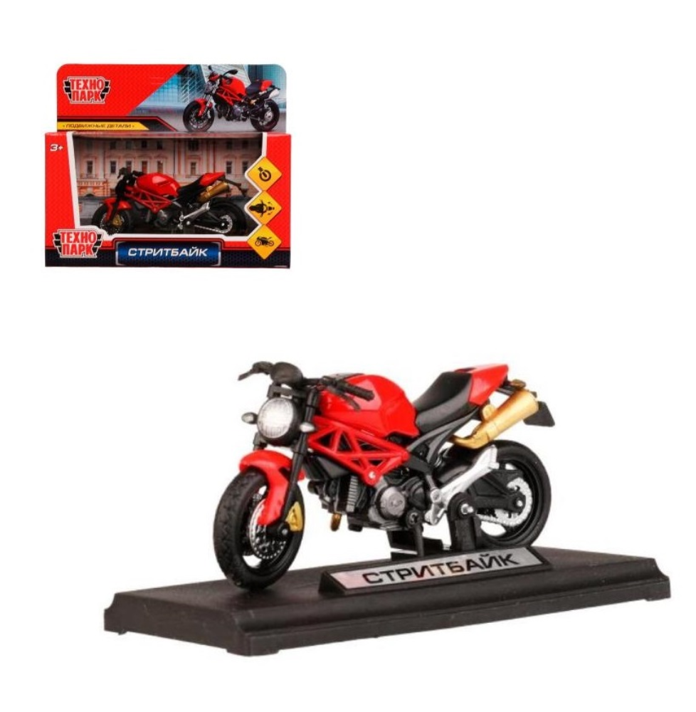 Модель Мотоцикл Стритбайк 11см металлический руль поворачивается, подвеска, подножка Технопарк