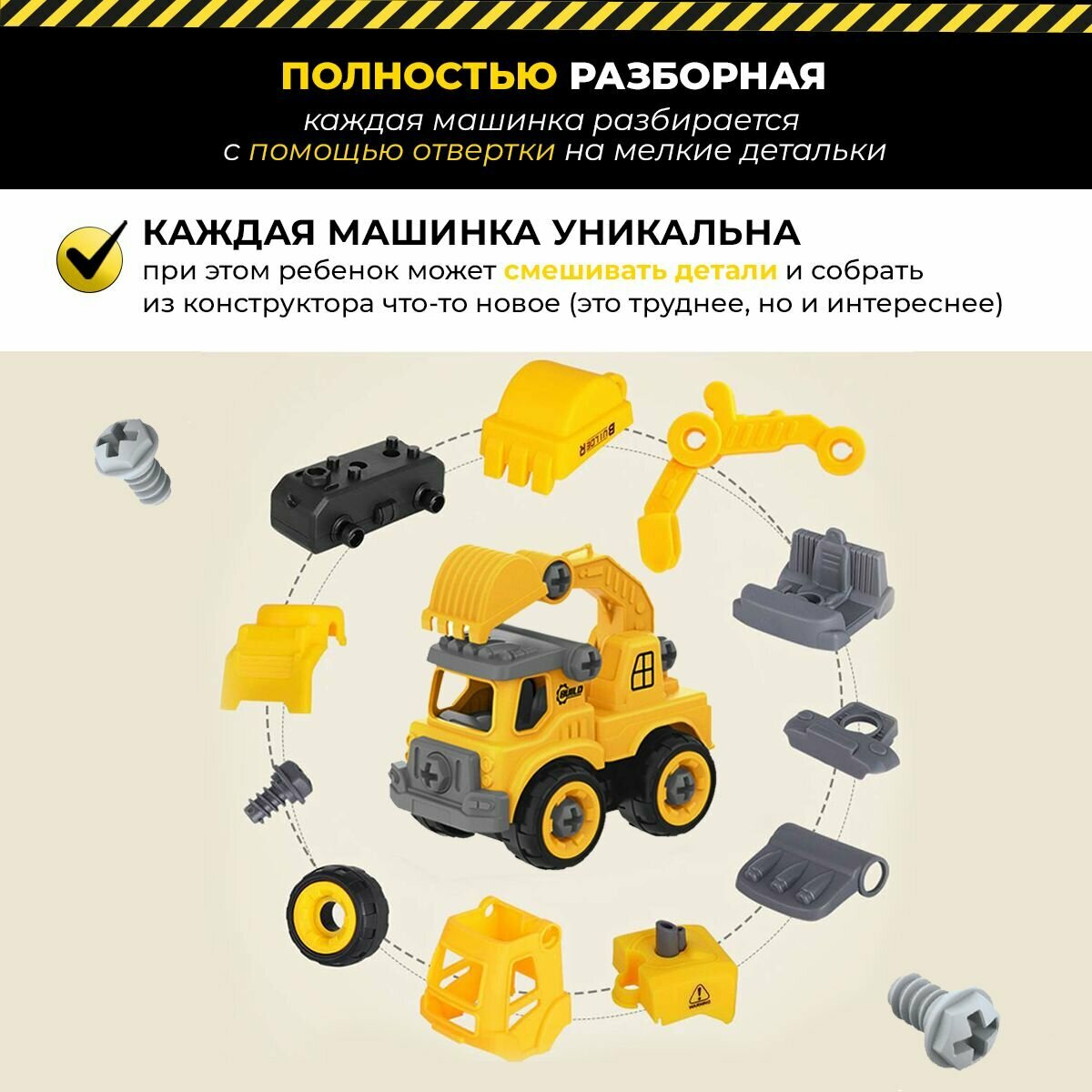 Набор ярких разборных машинок "Строительная Спецтехника 2" с отвёрткой