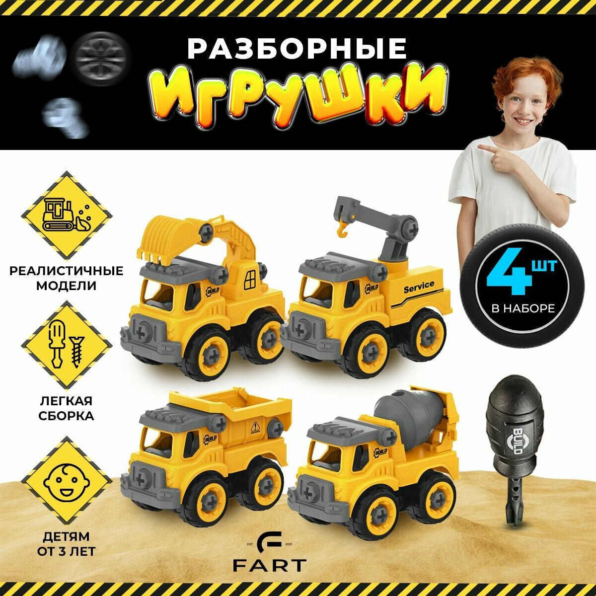 Купить Набор разборных машинок "Строительная Спецтехника" с отвёрткой.