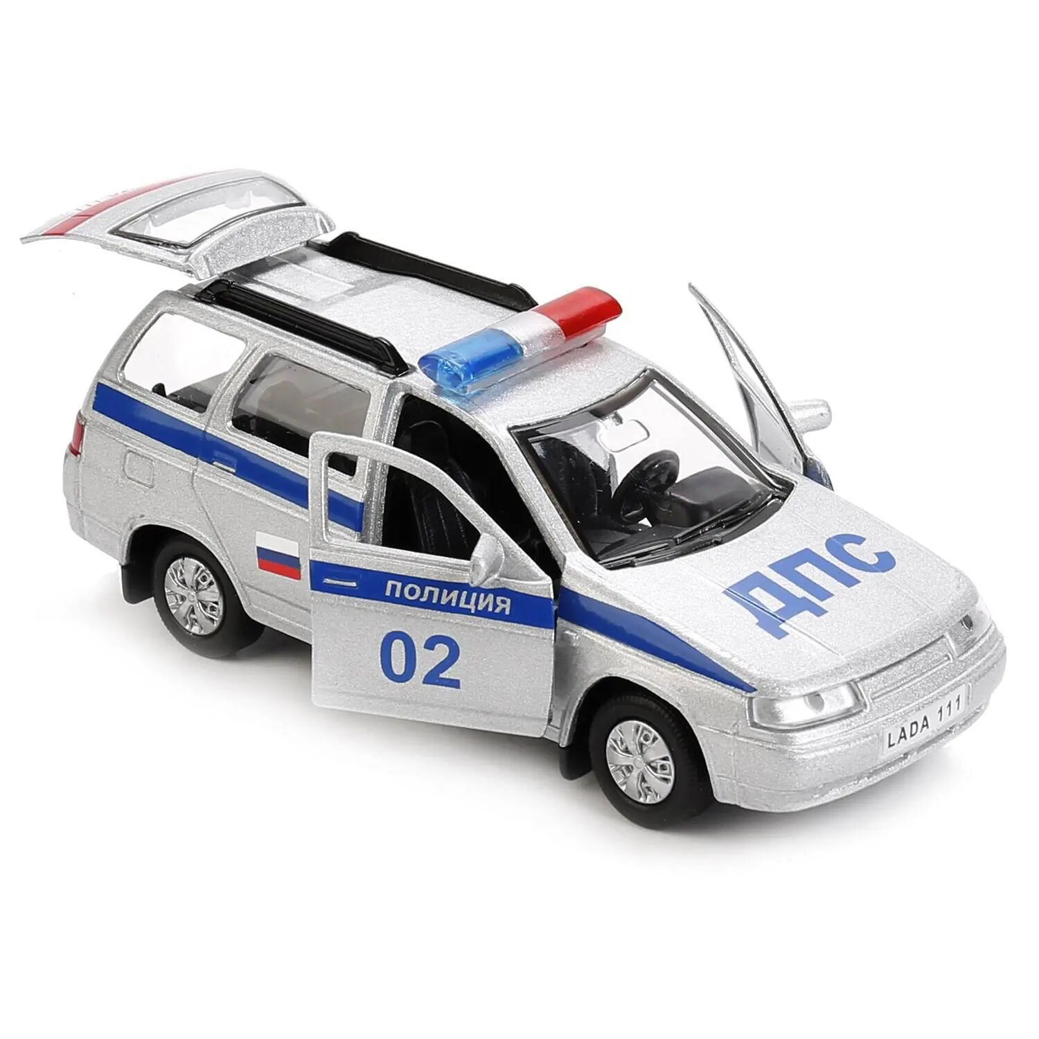 Машинка детская Лада 111 ВАЗ 2111 Полиция 12 см, Технопарк, серебристая, открываются двери и багажник, металлическая