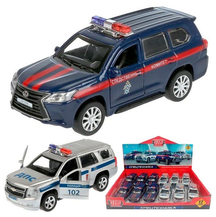 Купить Модель Инерц. Chevrolet Tahoe/Lexus LX-570 Полиция/Следственный комитет (12см, металл, открываются двери и багажник, в ассорт.) TAHOELX570-12DB12-COP (ст.72/ст.12),