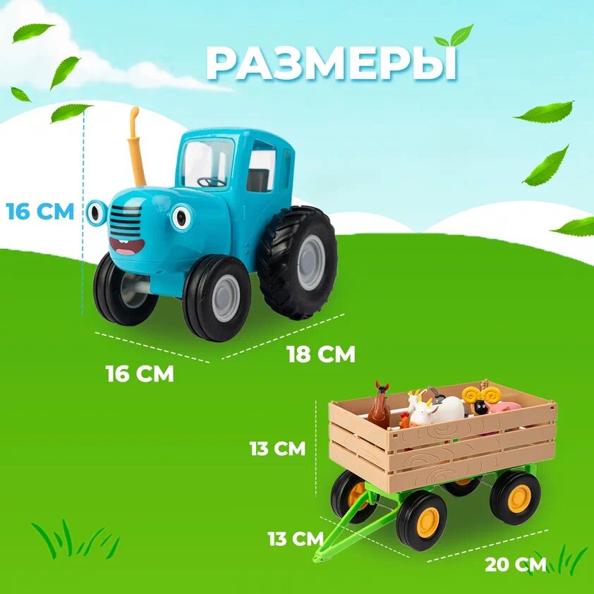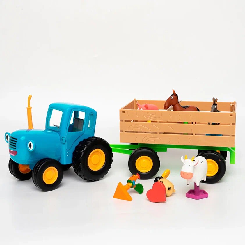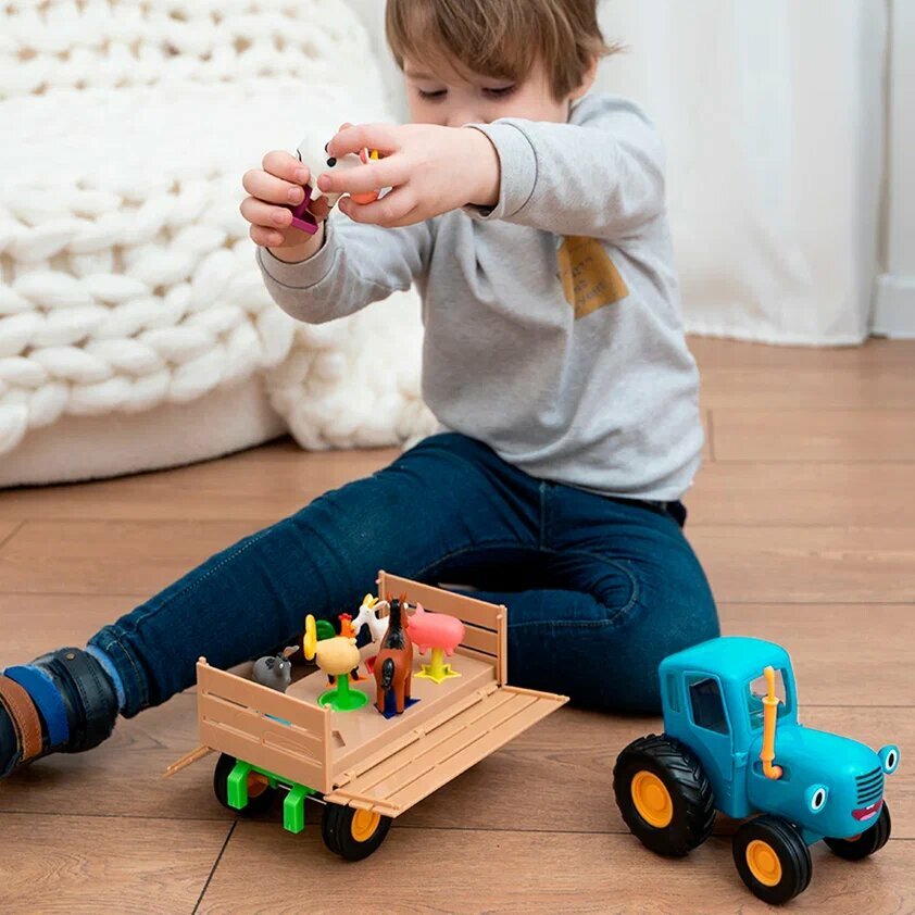 Синий трактор с прицепом и набором животных фермы Super01 интересное: