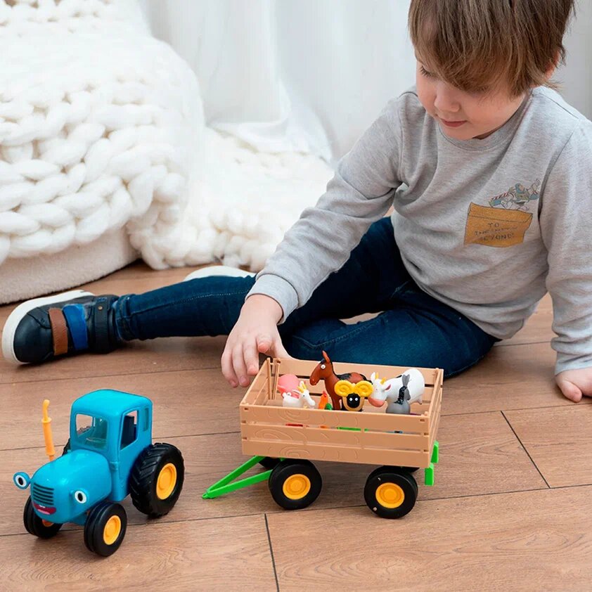 Игрушка Прицеп с животными "Синий трактор" Super01, инерционная, для купания