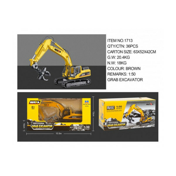 Купить Металлический экскаватор с грейфером Hui Na Toys масштаб 1:50 - HN1713 (HN1713)