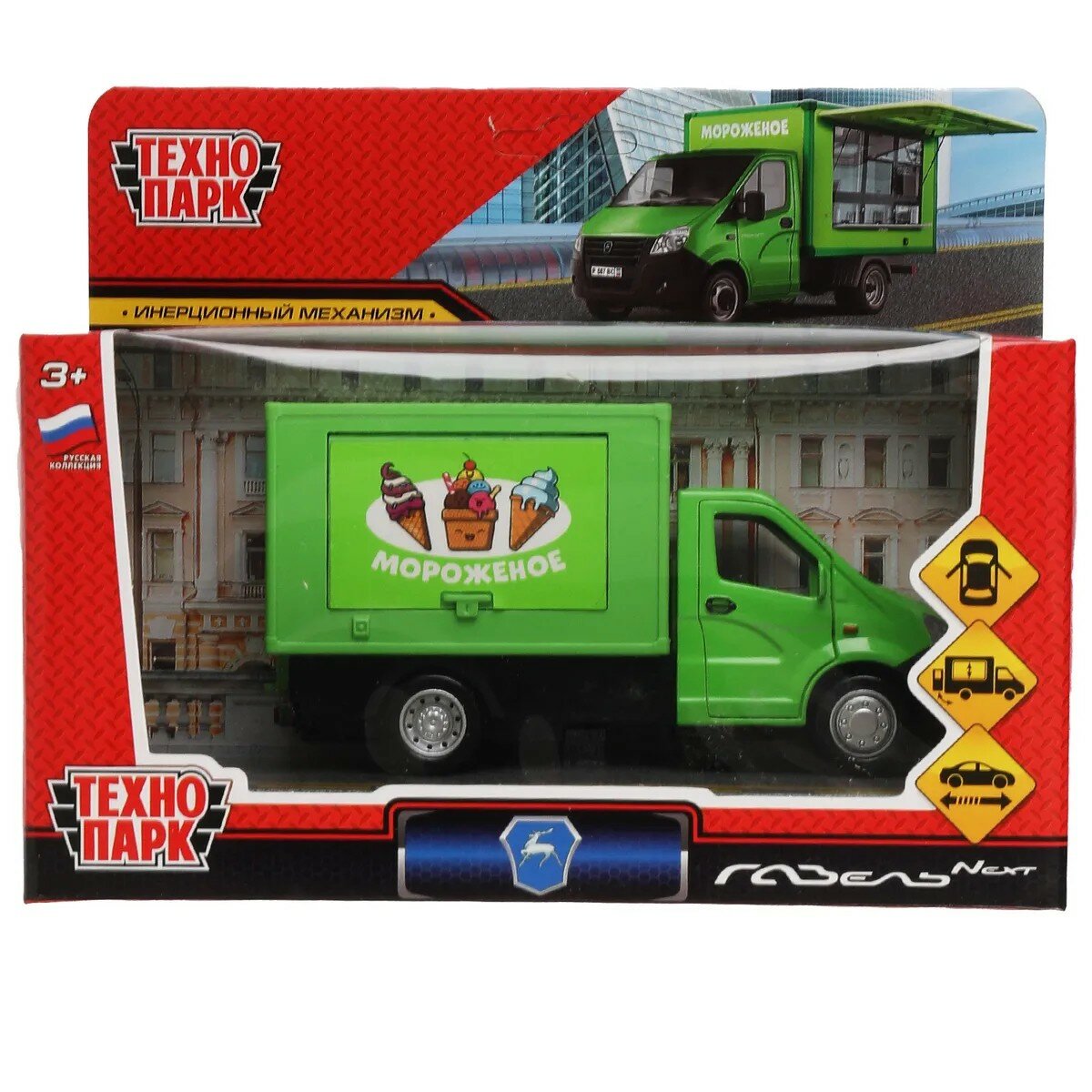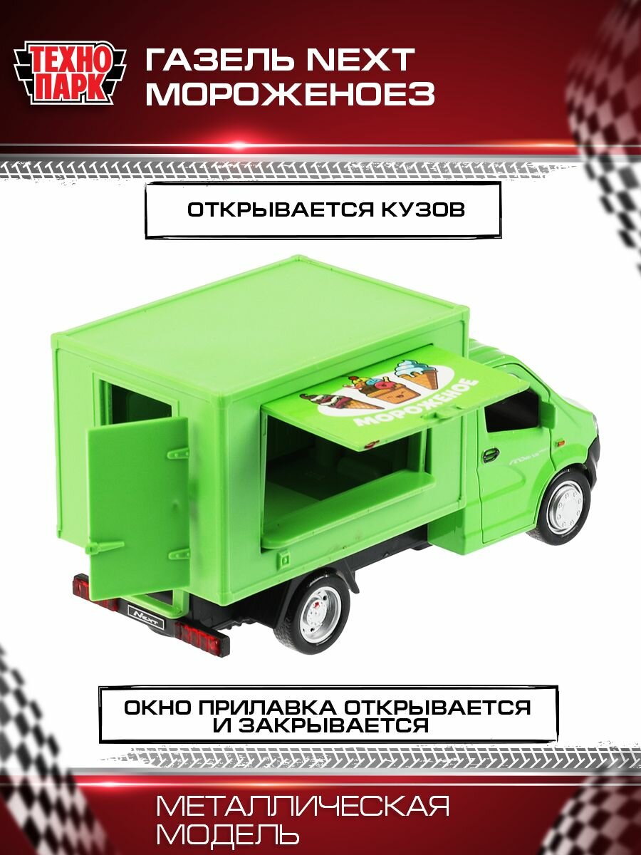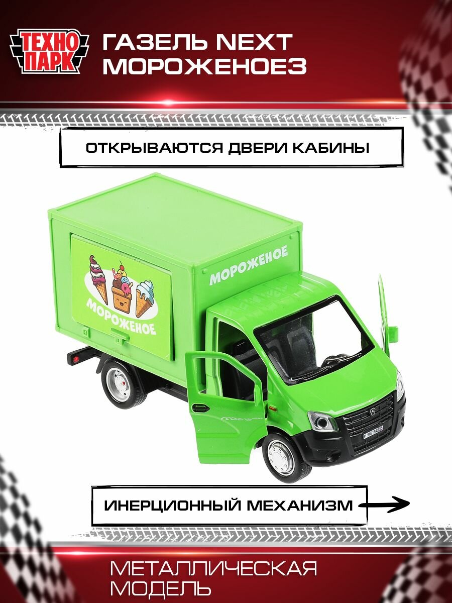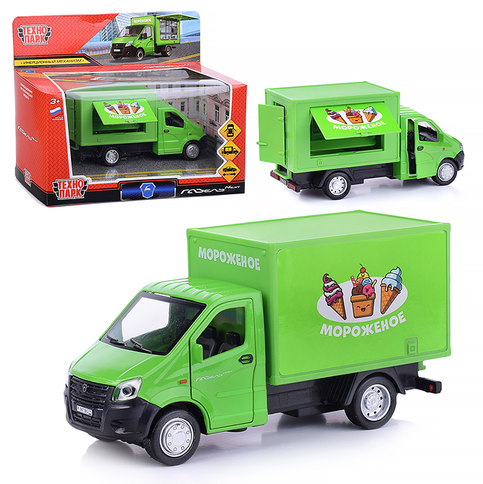 Купить Машина металлическая газель NEXT мороженое 14 см, двер, прилав, инерц, зел