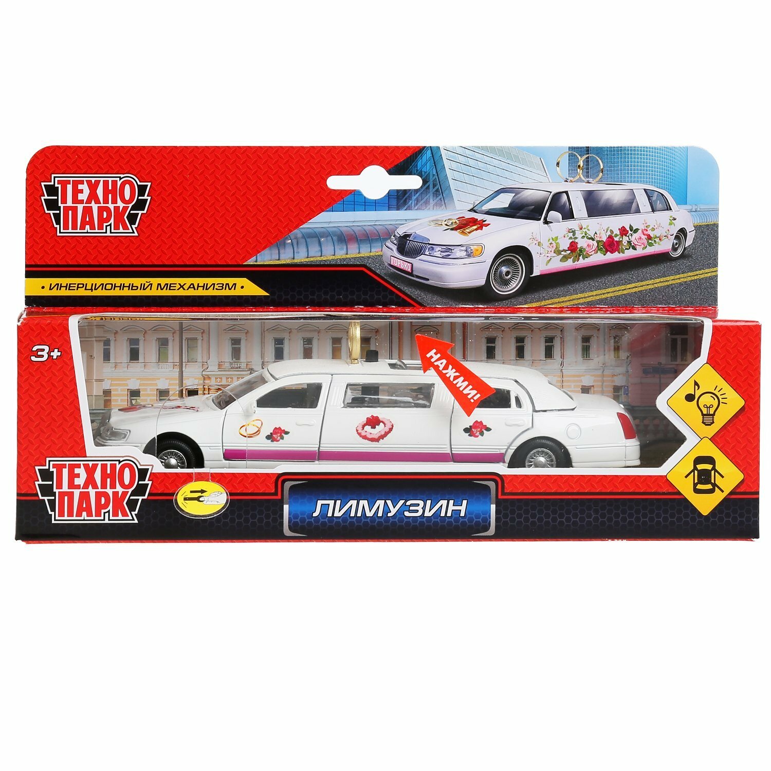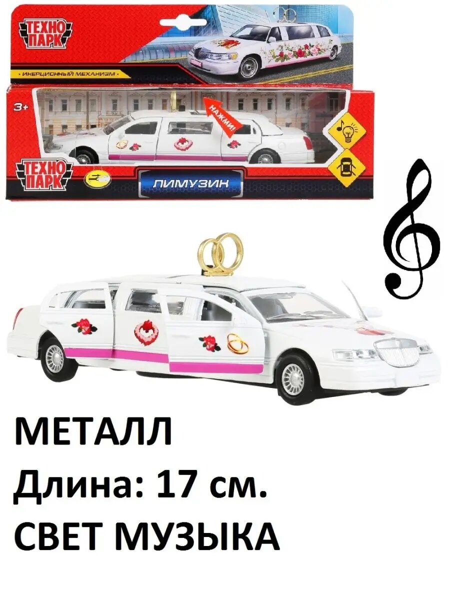 Купить Машинка инерционная ТехноПарк Свадебный лимузин со светом и звуком, CT-10-105L