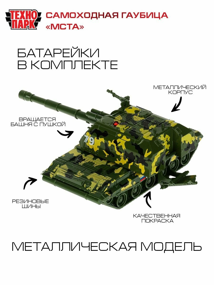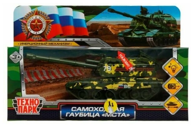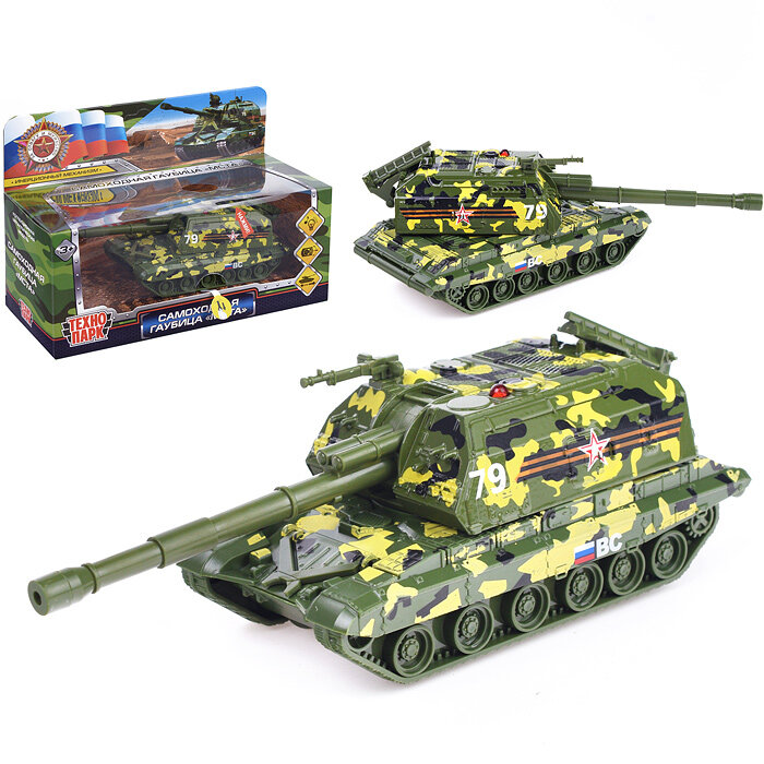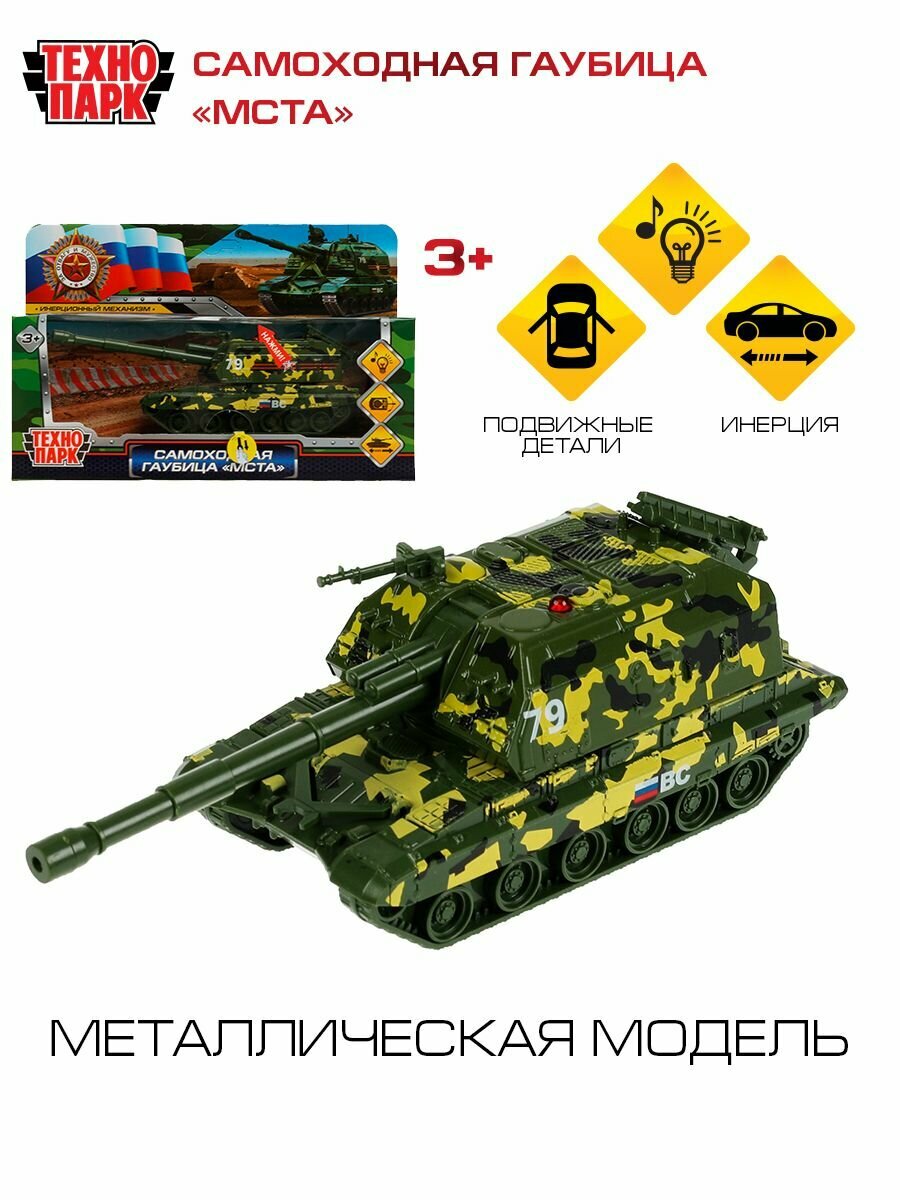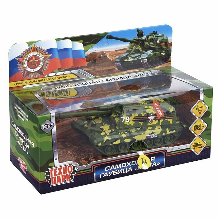 Купить Модель Инерц. Самоходная Гаубица "мста" (12см, металл, свет, звук, вращается башня, камуфляж, в коробке) MSTA-12SLMIL-GN,